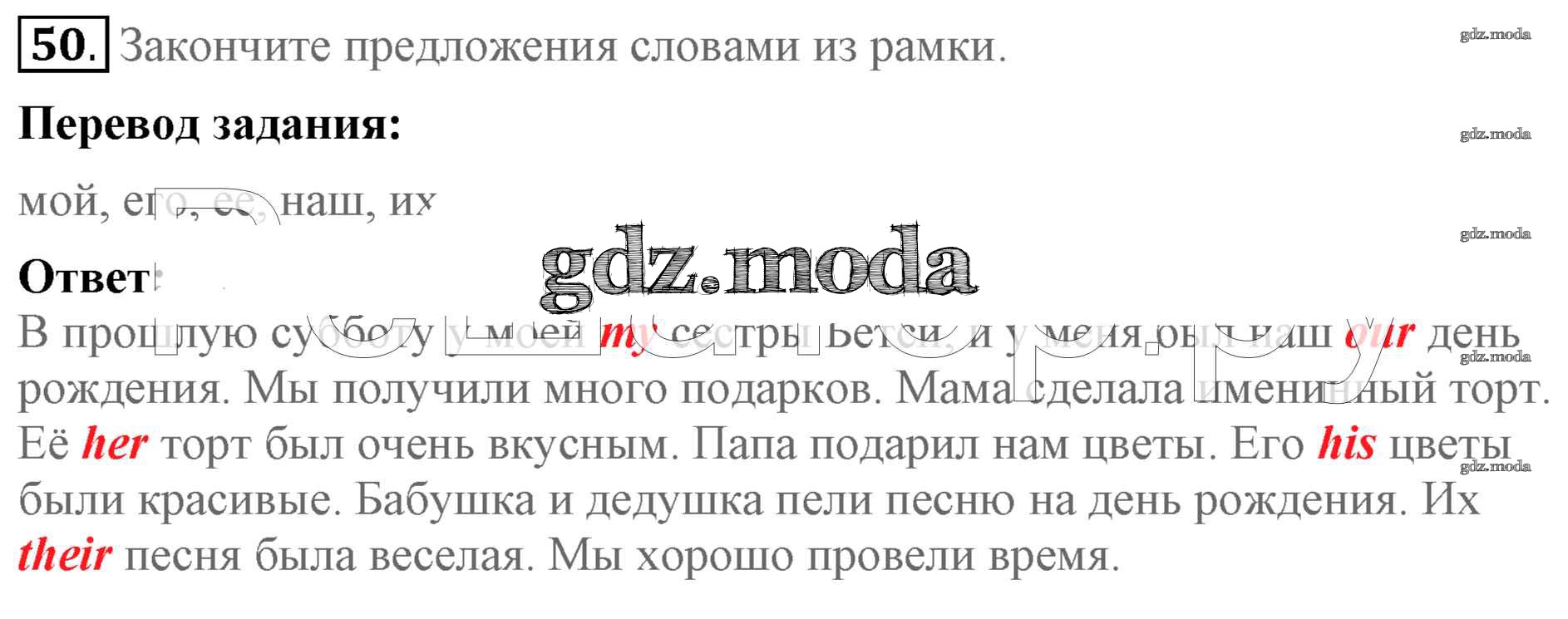 ОТВЕТ на задание № 50 Учебник по Английскому языку 4 класс Биболетова Enjoy English