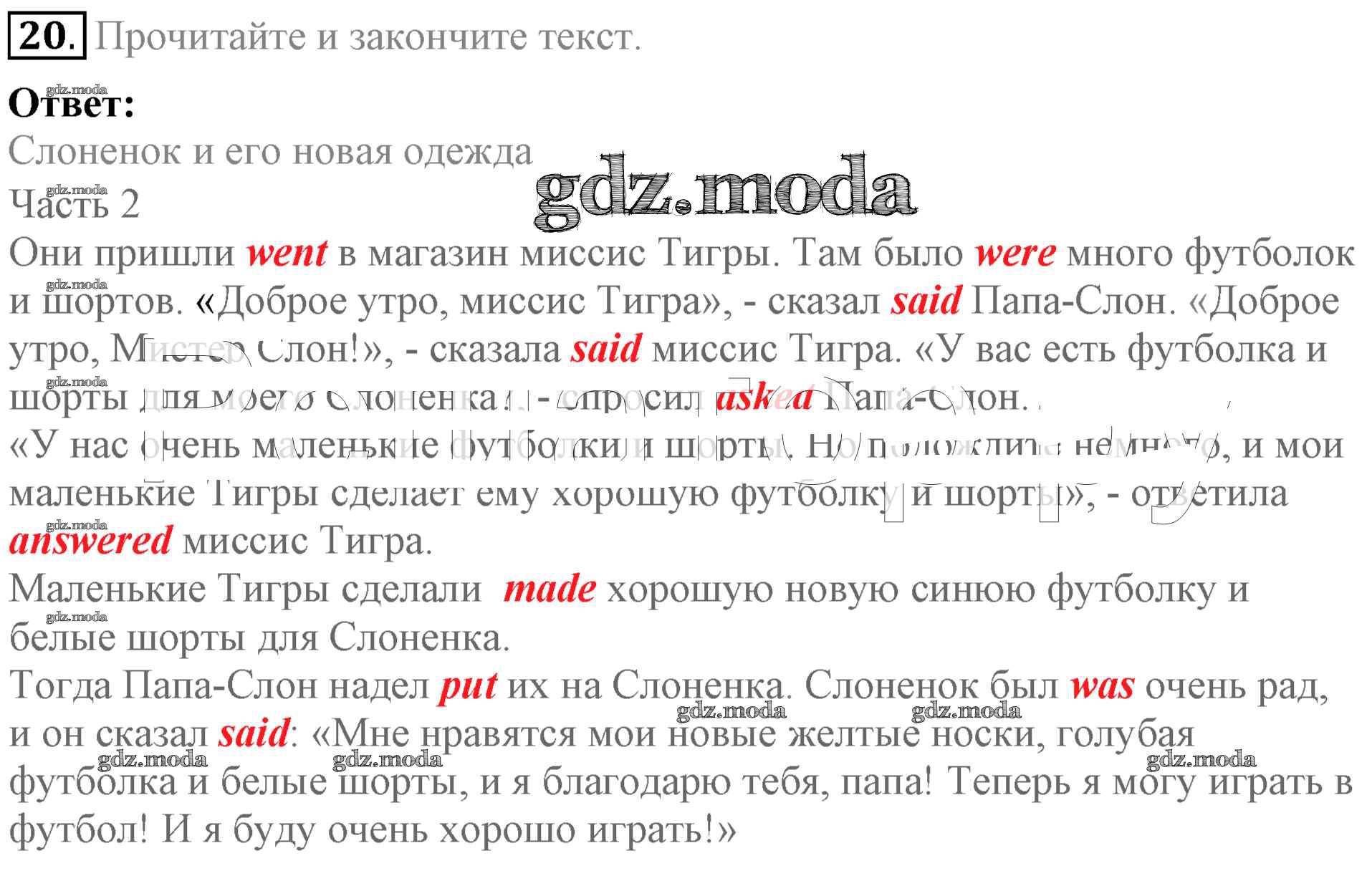 ОТВЕТ на задание № 20 Учебник по Английскому языку 4 класс Биболетова Enjoy English
