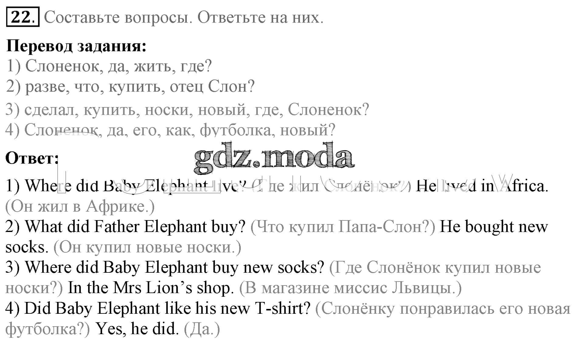 ОТВЕТ на задание № 22 Учебник по Английскому языку 4 класс Биболетова Enjoy English