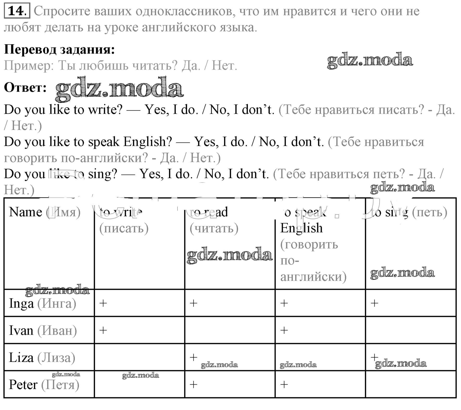 ОТВЕТ на задание № 14 Учебник по Английскому языку 4 класс Биболетова Enjoy English