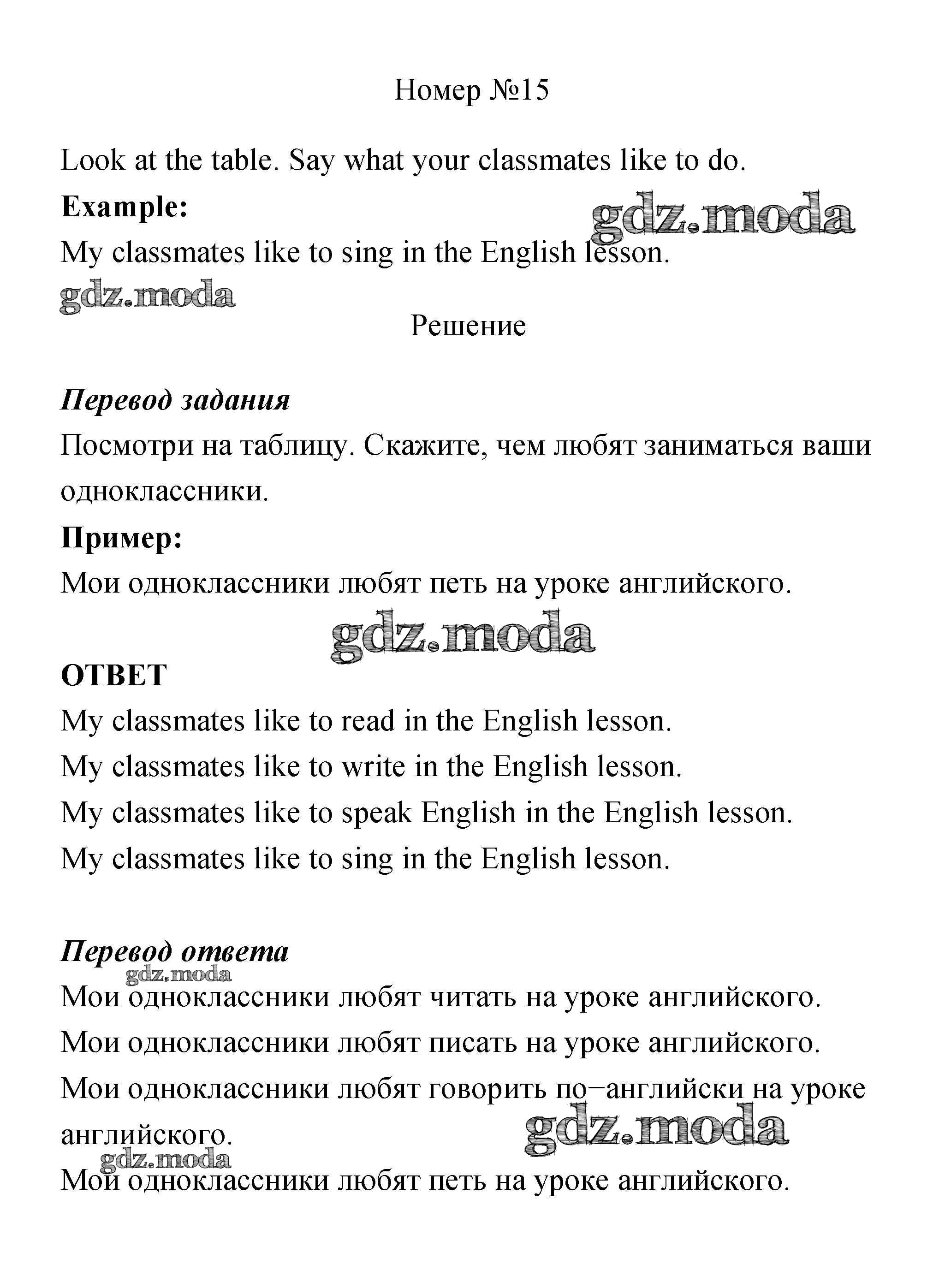 ОТВЕТ на задание № 15 Учебник по Английскому языку 4 класс Биболетова Enjoy English