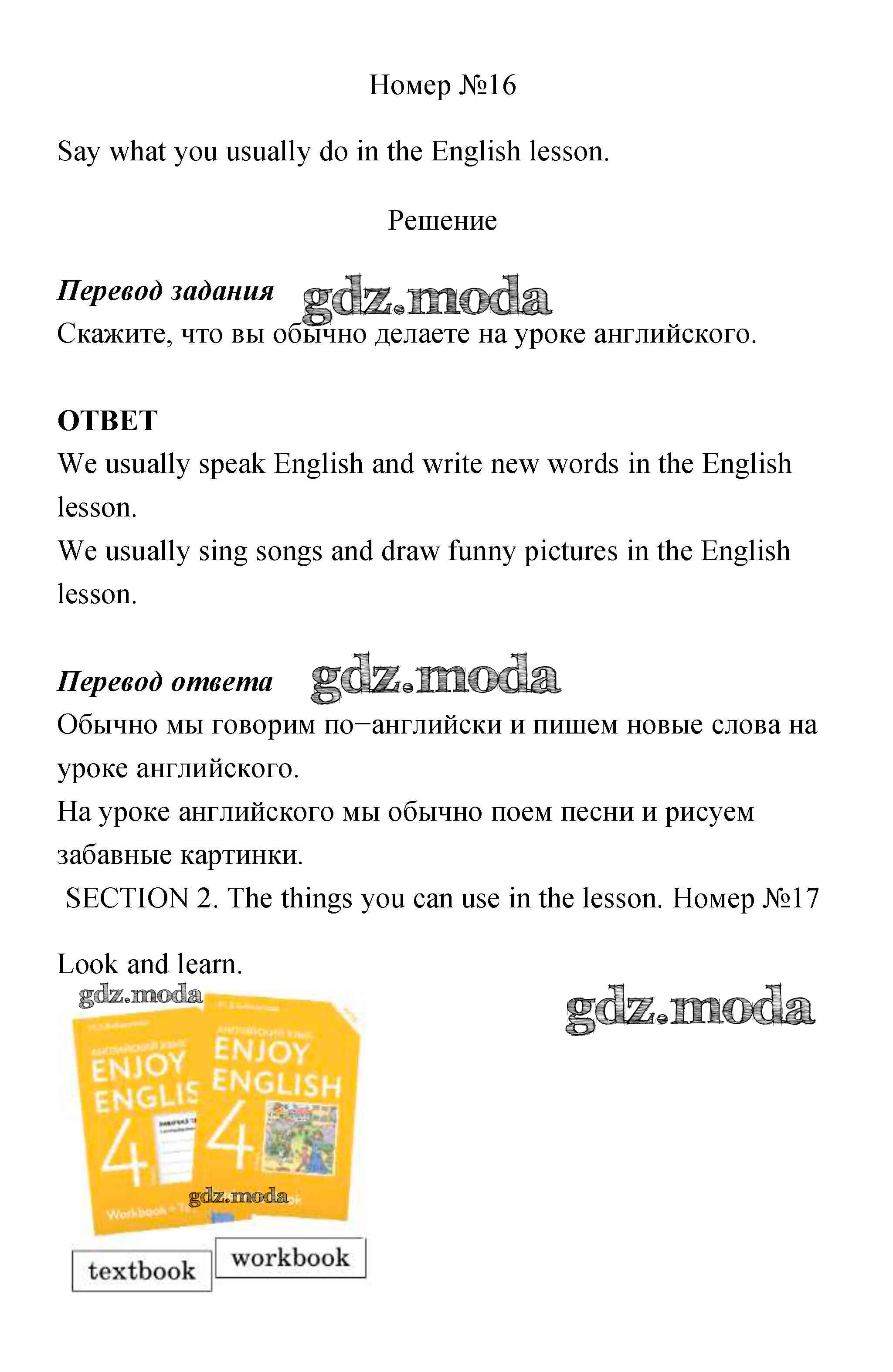 ОТВЕТ на задание № 16 Учебник по Английскому языку 4 класс Биболетова Enjoy English