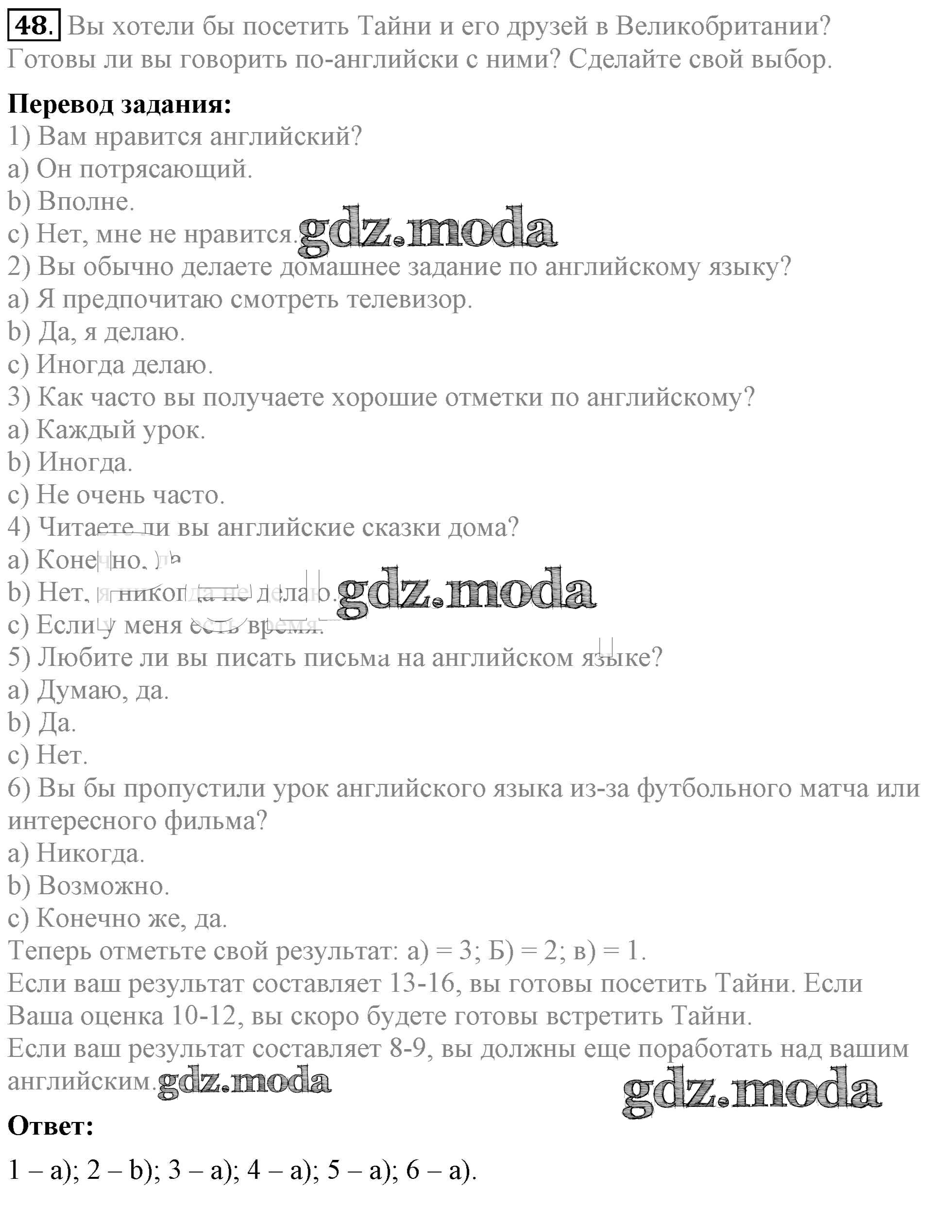 ОТВЕТ на задание № 48 Учебник по Английскому языку 4 класс Биболетова Enjoy English
