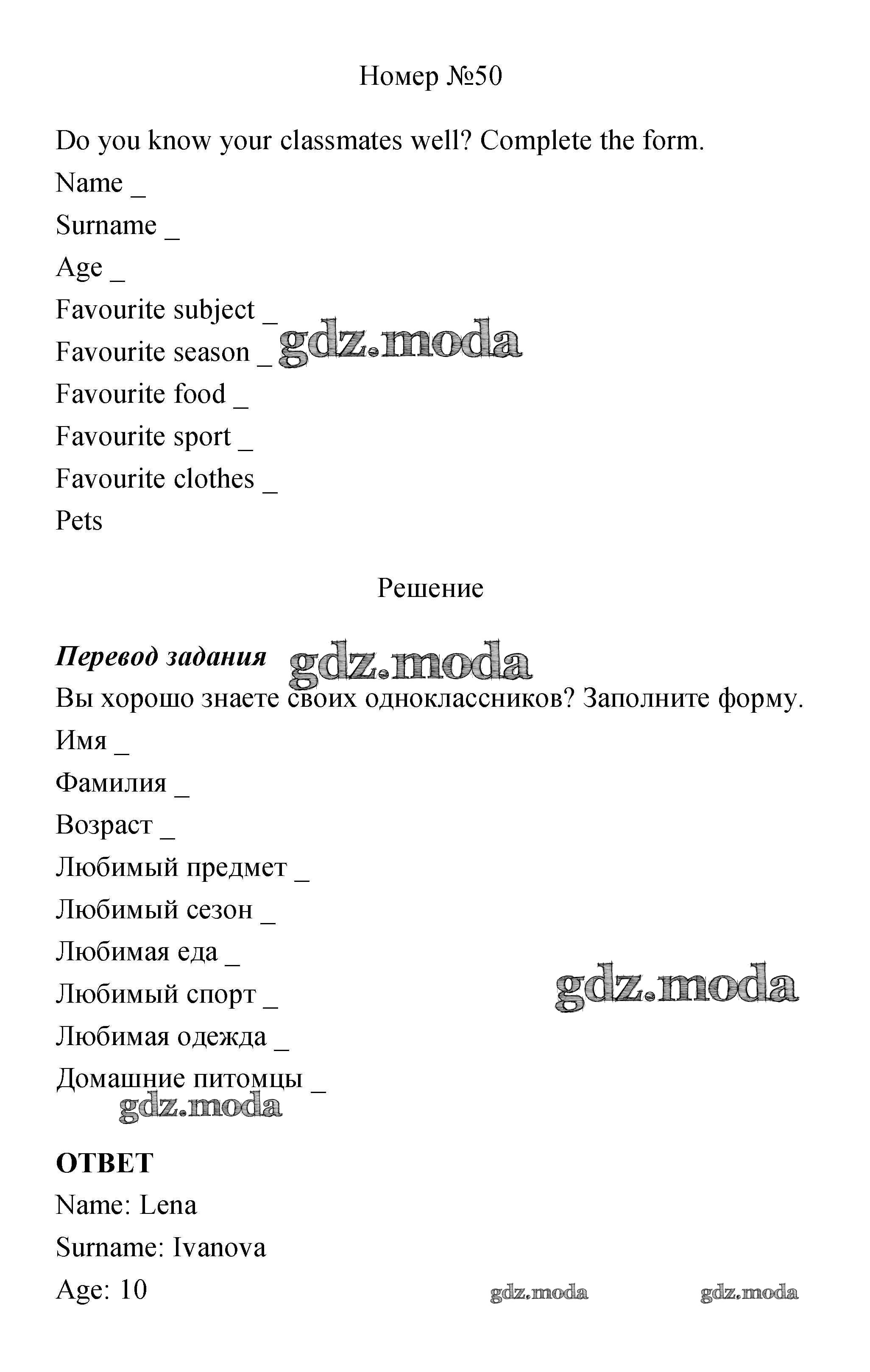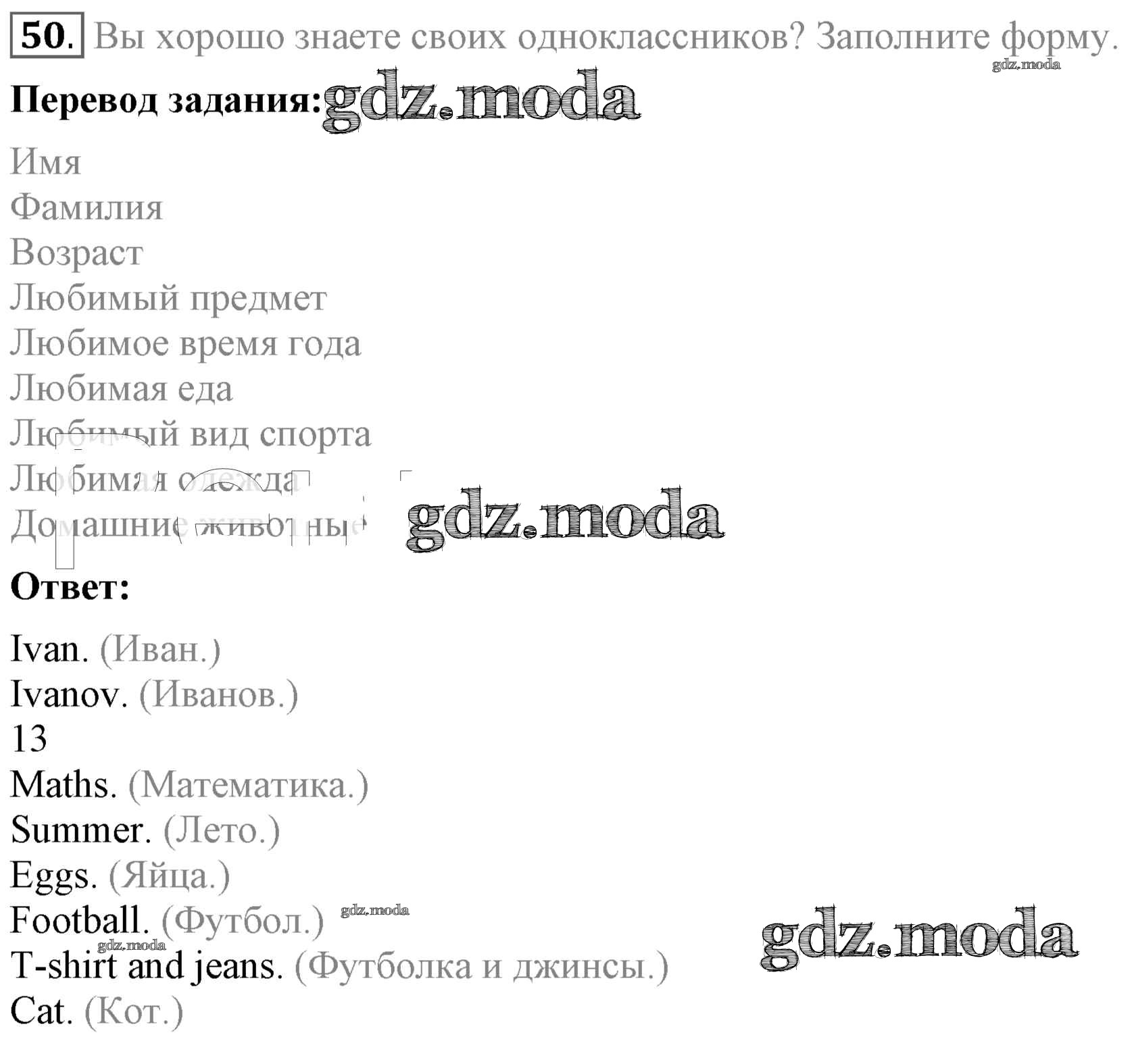 ОТВЕТ на задание № 50 Учебник по Английскому языку 4 класс Биболетова Enjoy English