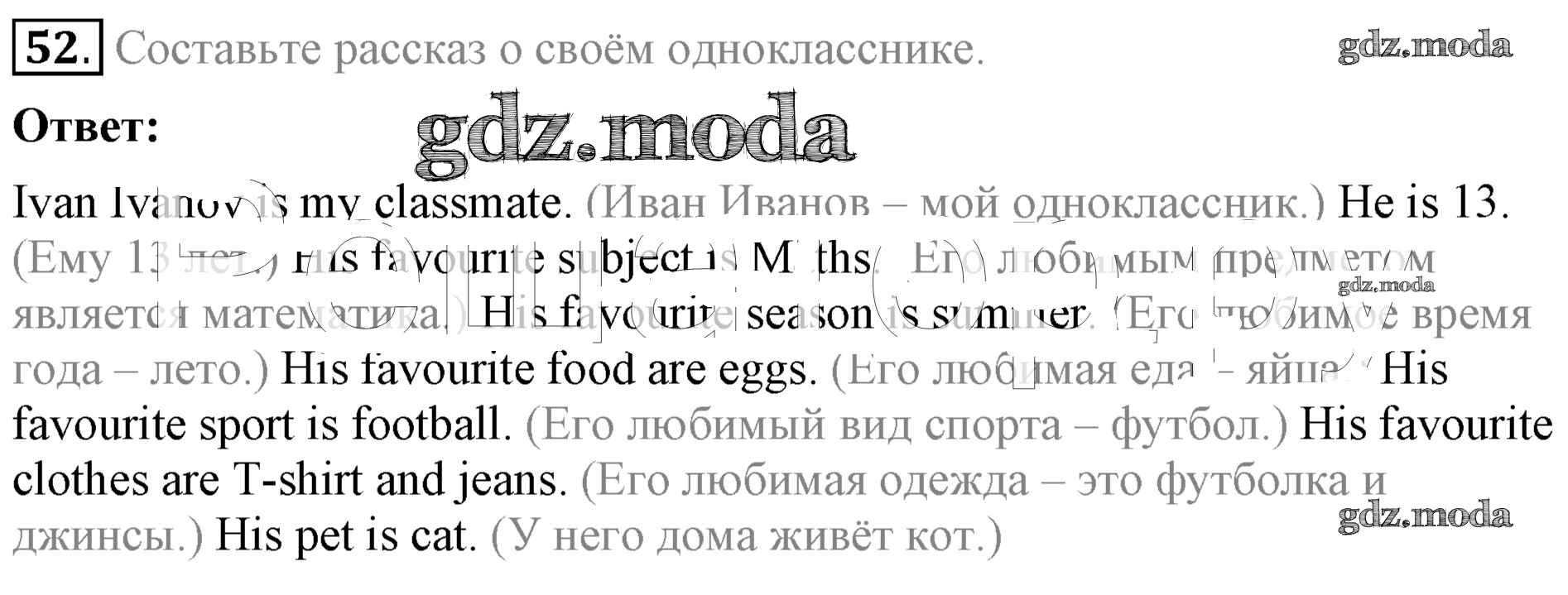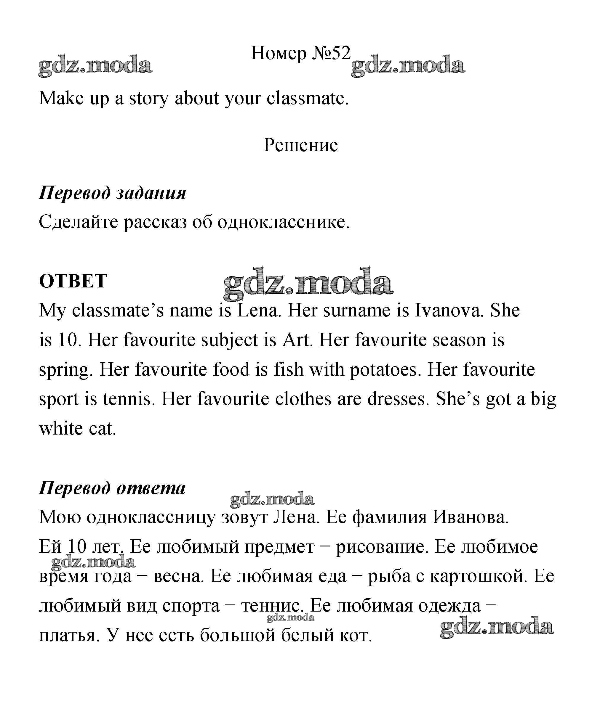 ОТВЕТ на задание № 52 Учебник по Английскому языку 4 класс Биболетова Enjoy English