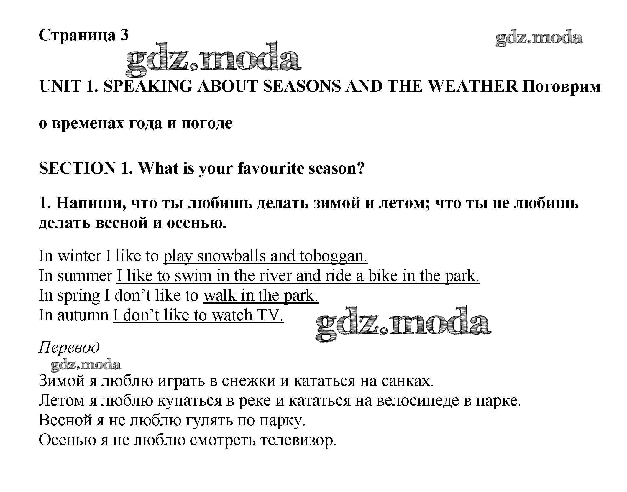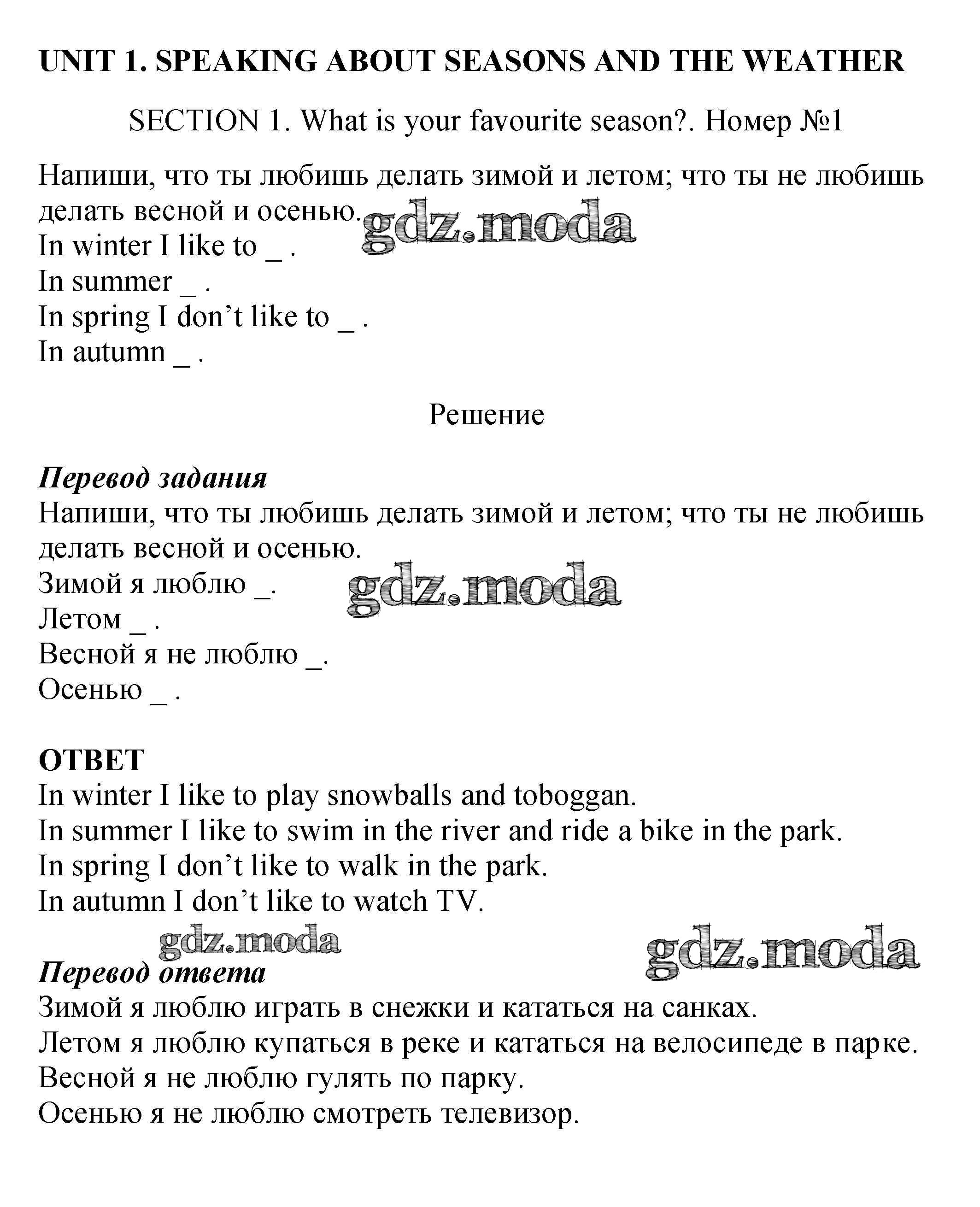 ОТВЕТ на задание № 1 Рабочая тетрадь с контрольными работами по Английскому языку 4 класс Биболетова Enjoy English