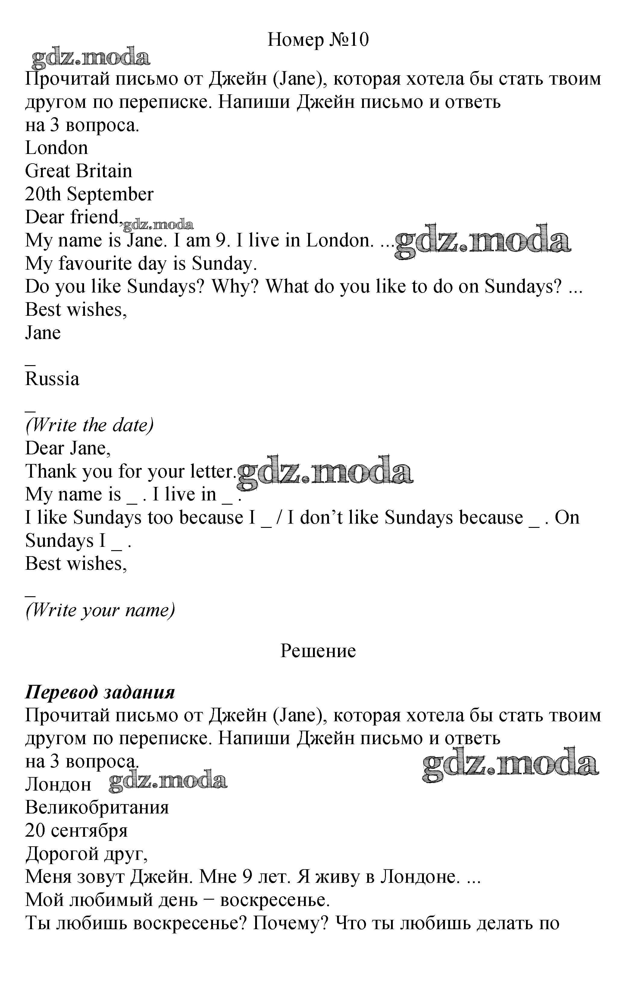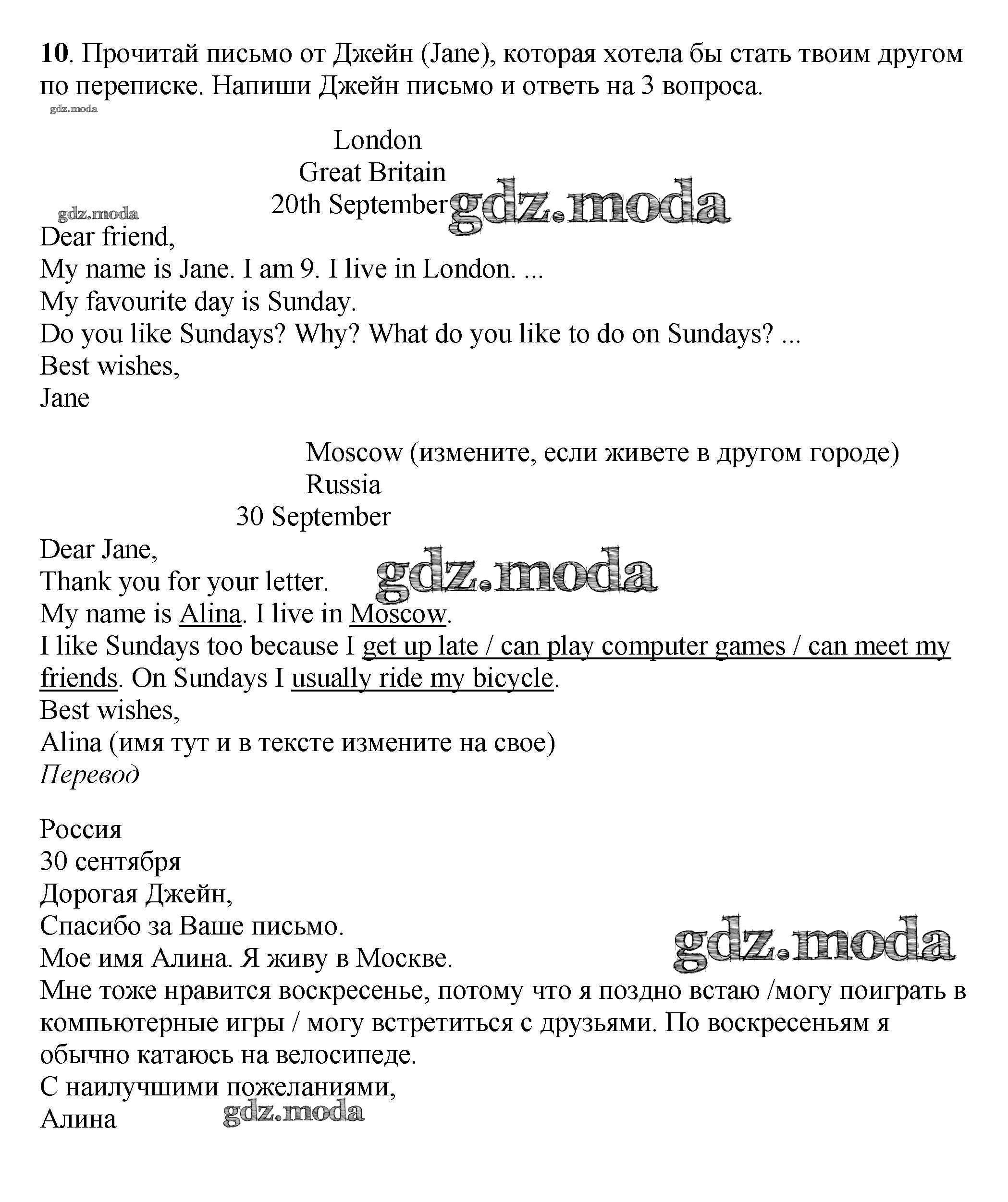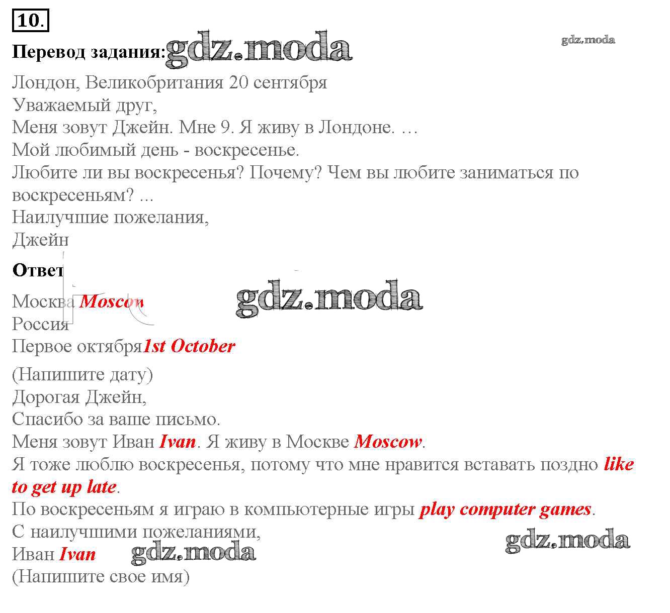 ОТВЕТ на задание № 10 Рабочая тетрадь с контрольными работами по Английскому языку 4 класс Биболетова Enjoy English