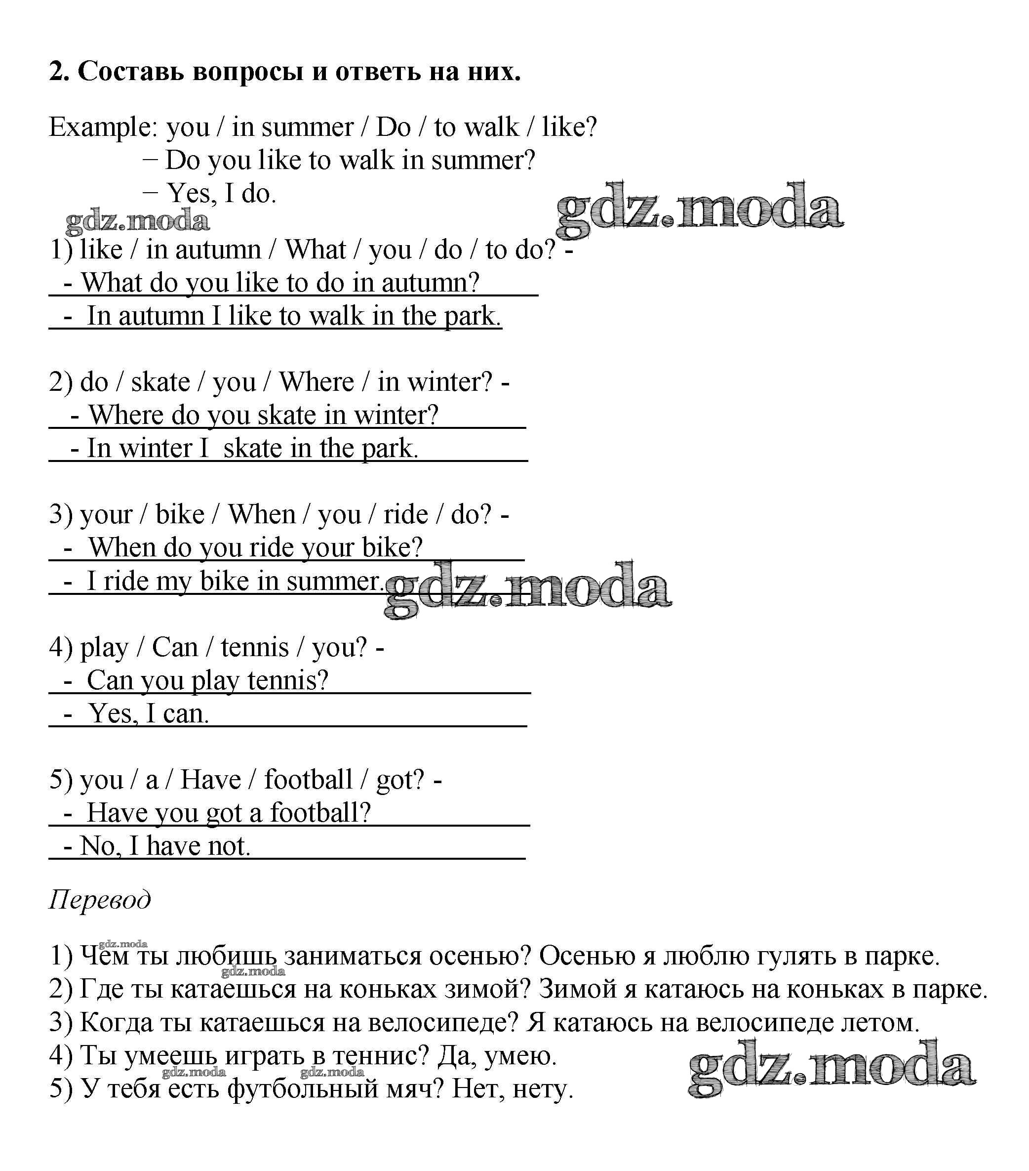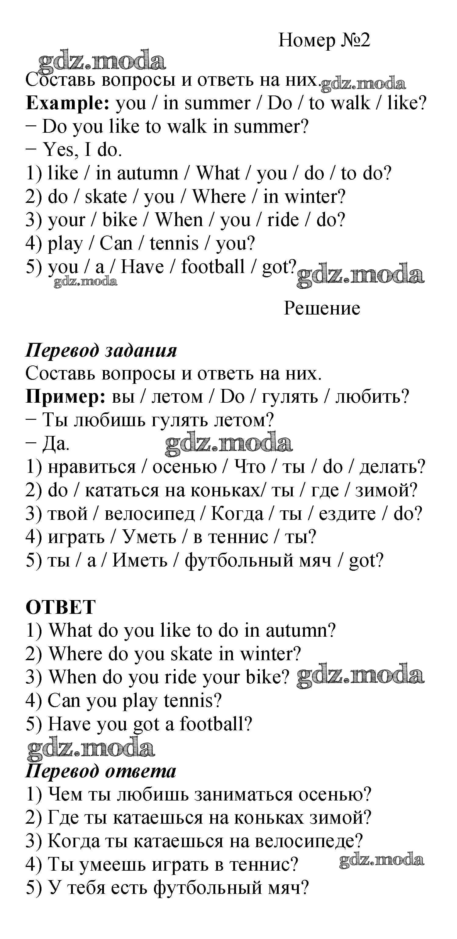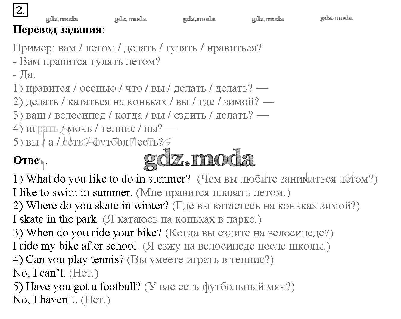 ОТВЕТ на задание № 2 Рабочая тетрадь с контрольными работами по Английскому языку 4 класс Биболетова Enjoy English