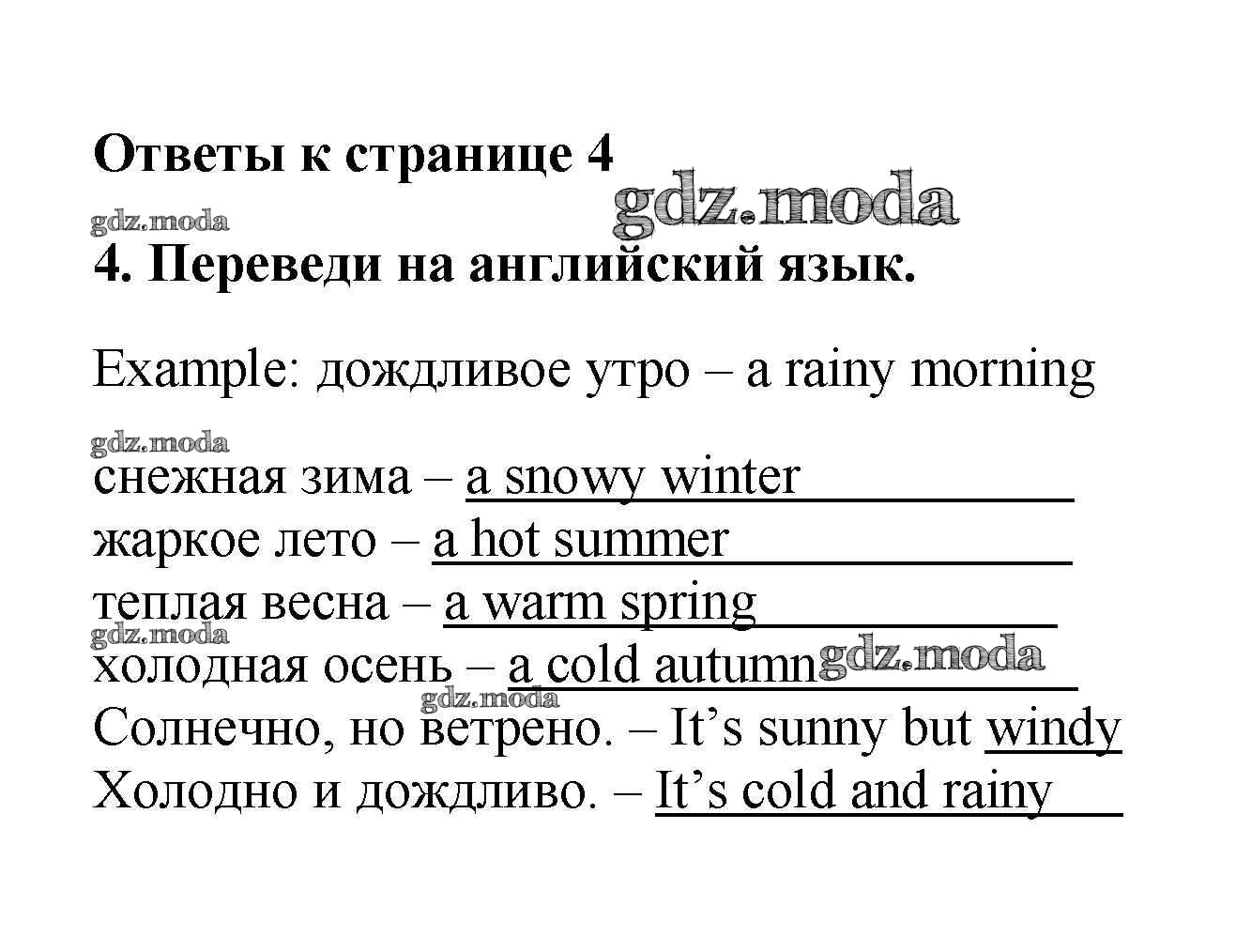 ОТВЕТ на задание № 4 Рабочая тетрадь с контрольными работами по Английскому языку 4 класс Биболетова Enjoy English