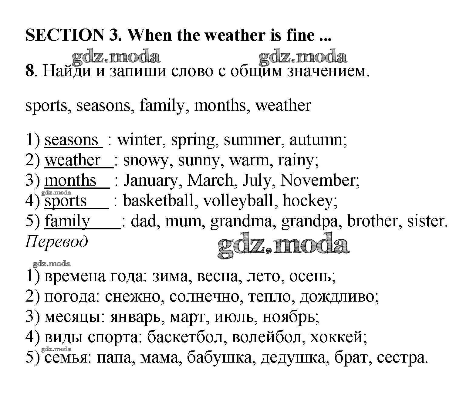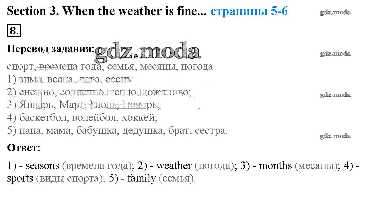 ОТВЕТ на задание № 8 Рабочая тетрадь с контрольными работами по Английскому языку 4 класс Биболетова Enjoy English