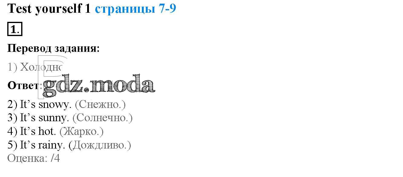 ОТВЕТ на задание № 1 Рабочая тетрадь с контрольными работами по Английскому языку 4 класс Биболетова Enjoy English