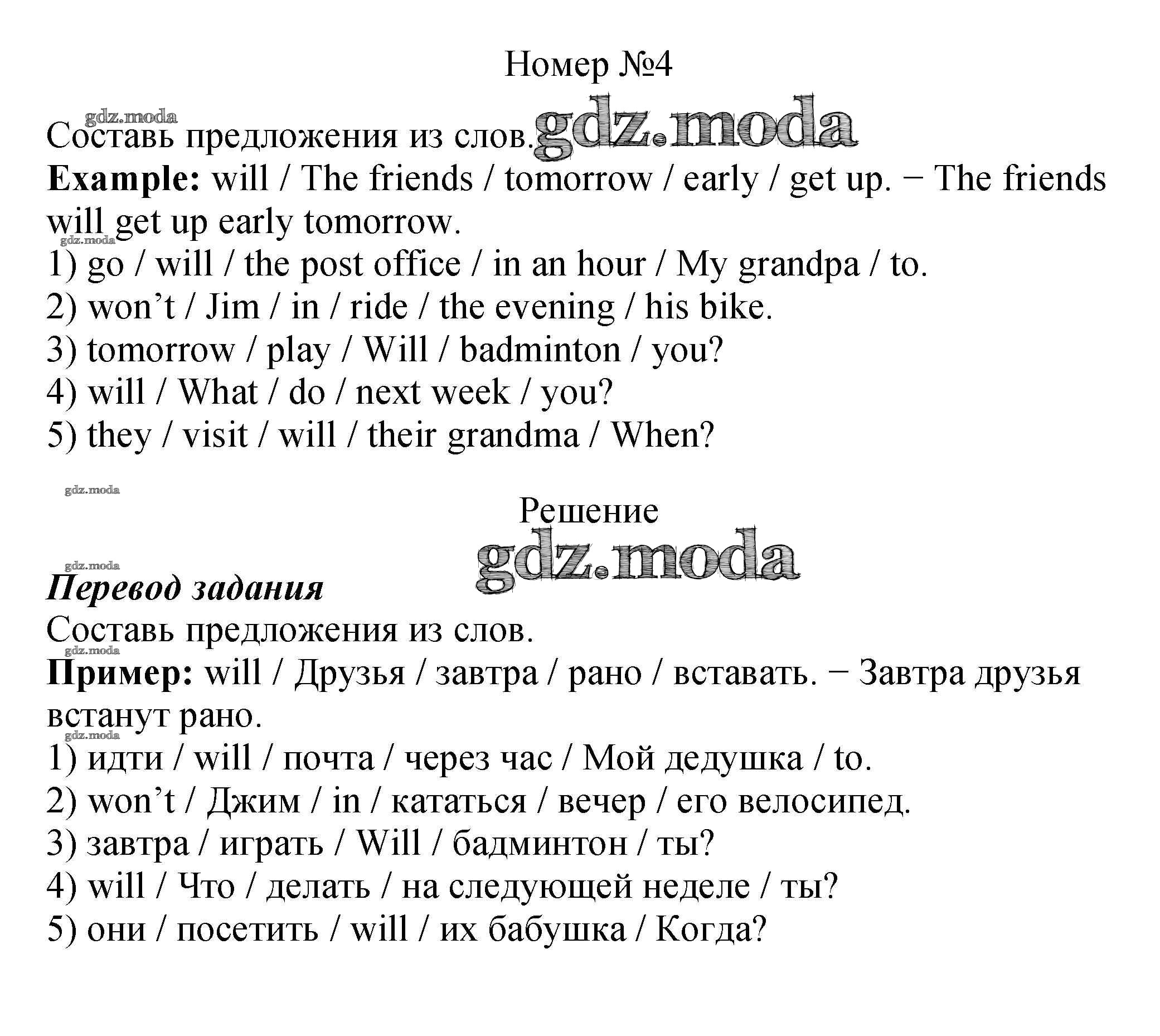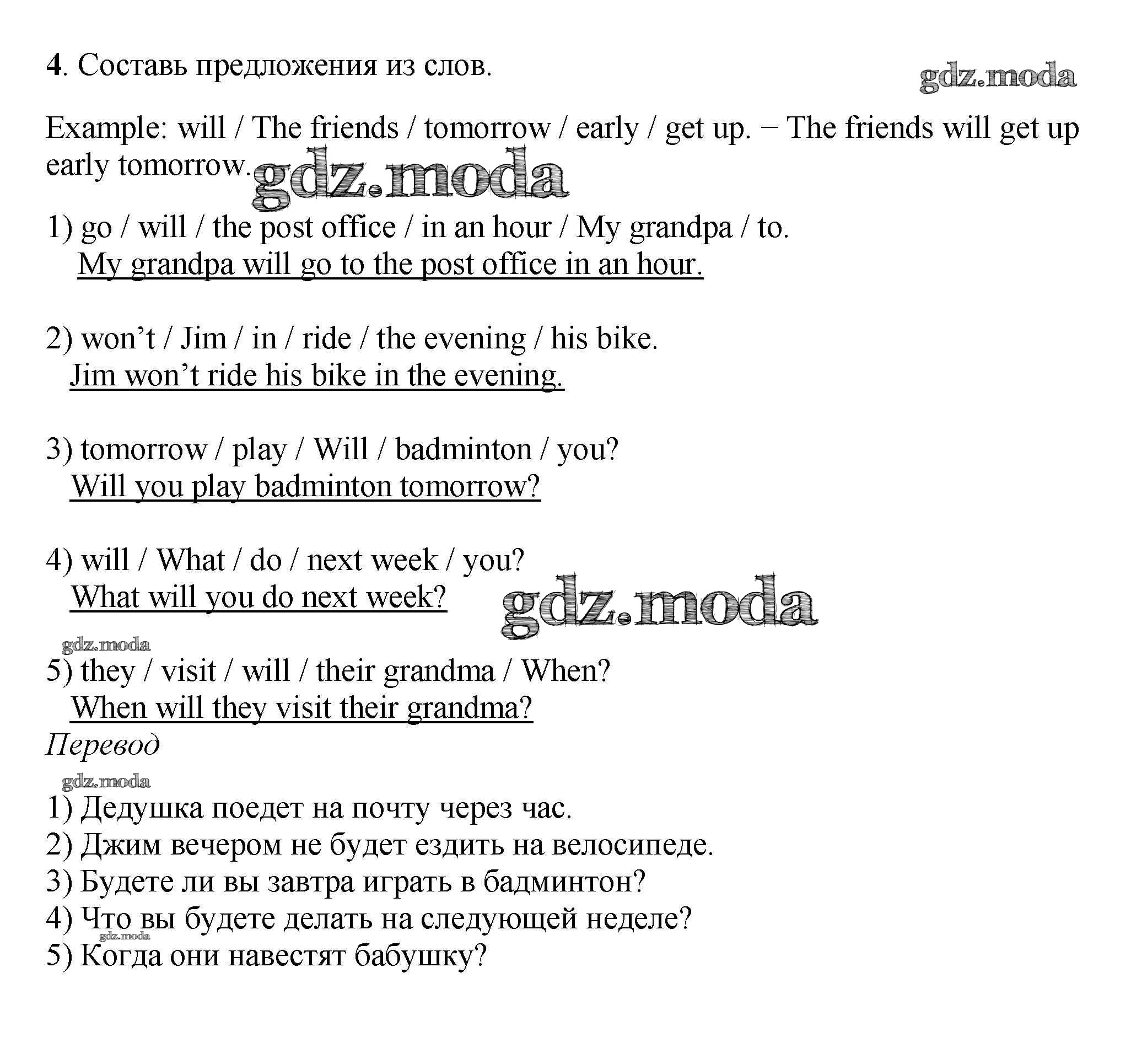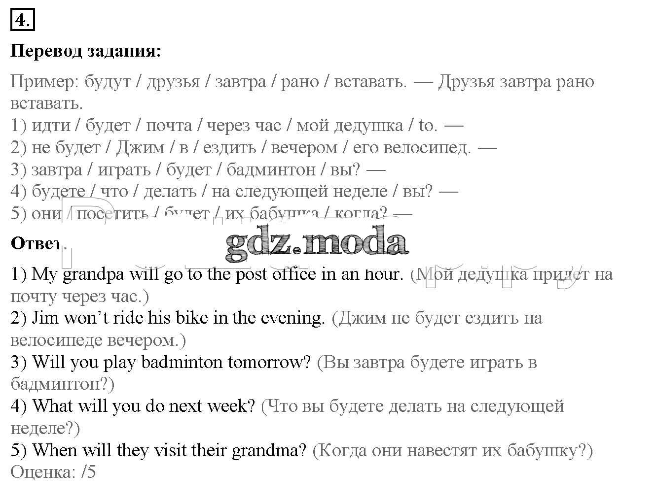 ОТВЕТ на задание № 4 Рабочая тетрадь с контрольными работами по Английскому языку 4 класс Биболетова Enjoy English