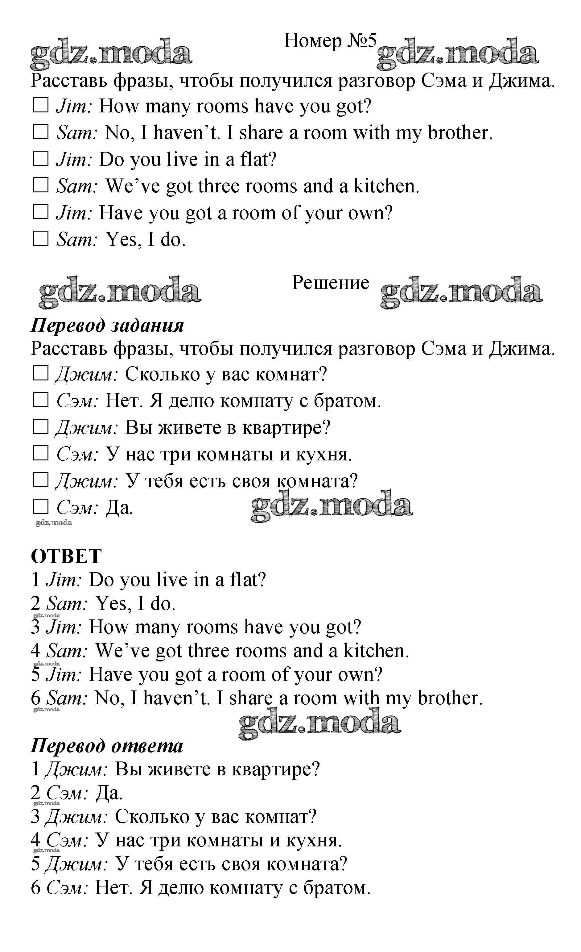 ОТВЕТ на задание № 5 Рабочая тетрадь с контрольными работами по Английскому языку 4 класс Биболетова Enjoy English