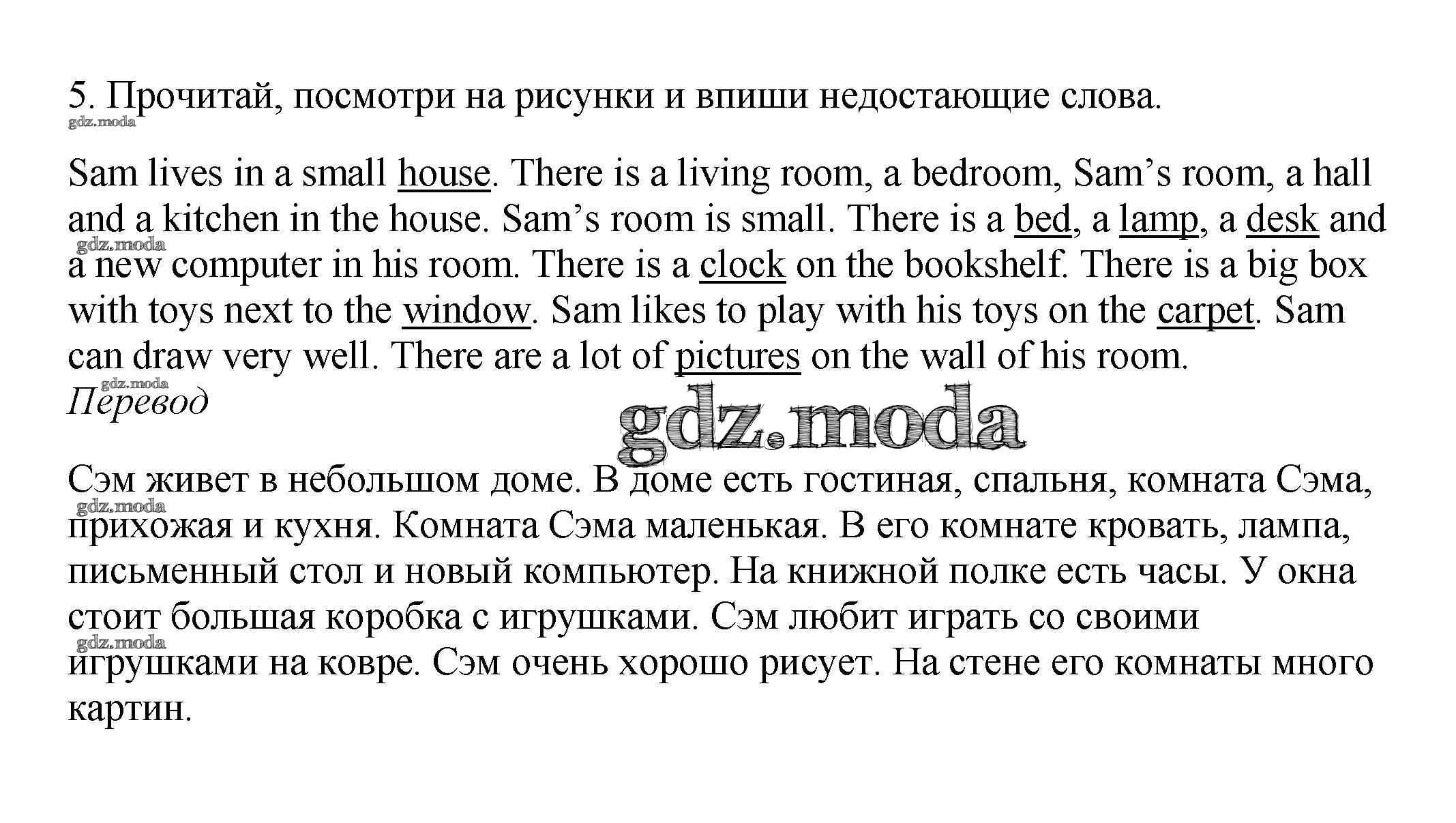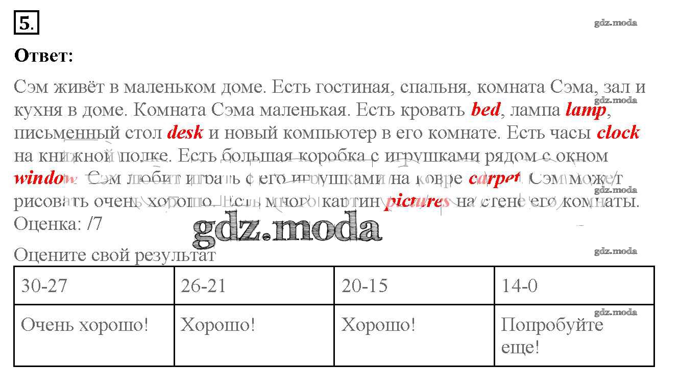 ОТВЕТ на задание № 5 Рабочая тетрадь с контрольными работами по Английскому языку 4 класс Биболетова Enjoy English