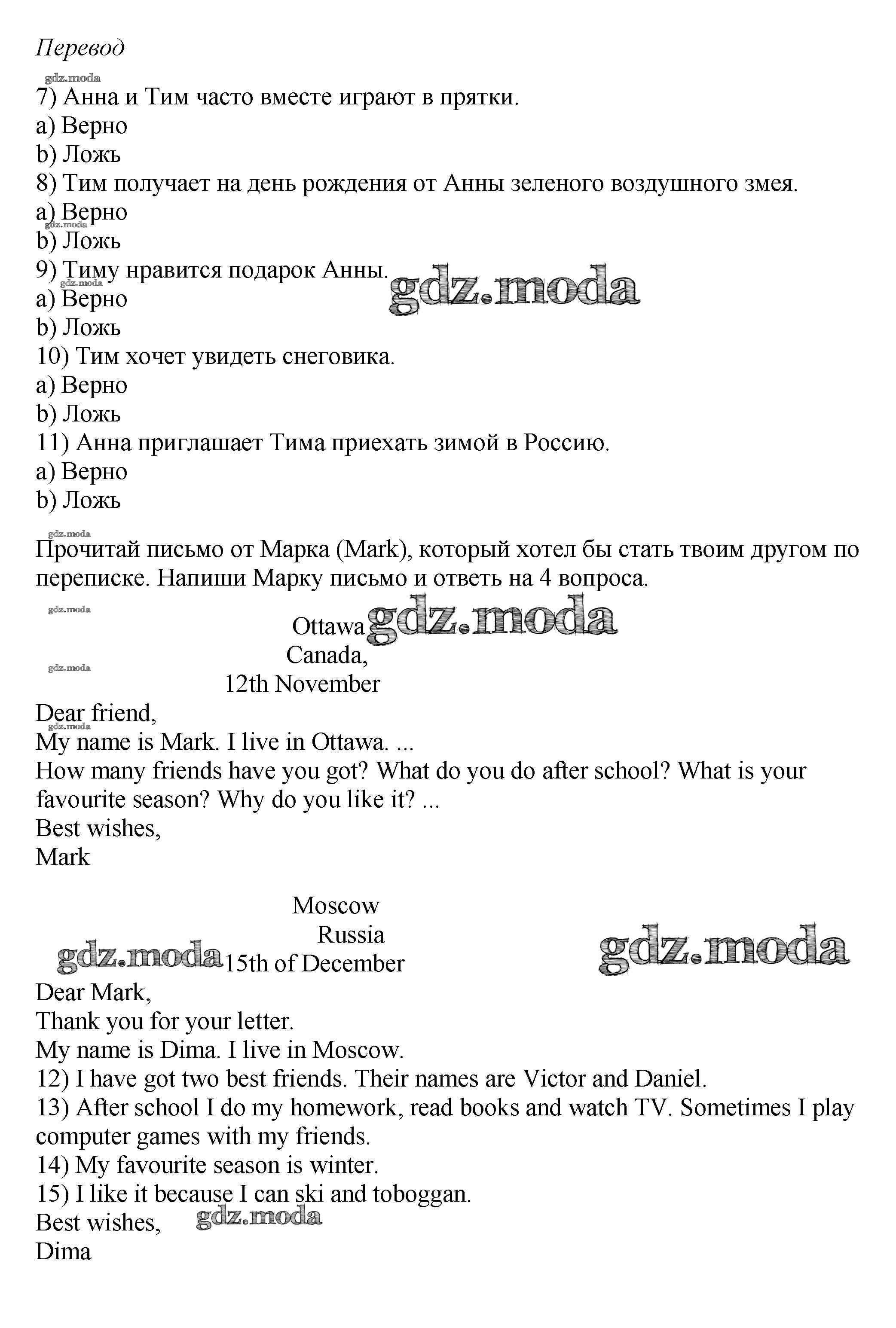 ОТВЕТ на задание № 1 Рабочая тетрадь с контрольными работами по Английскому языку 4 класс Биболетова Enjoy English