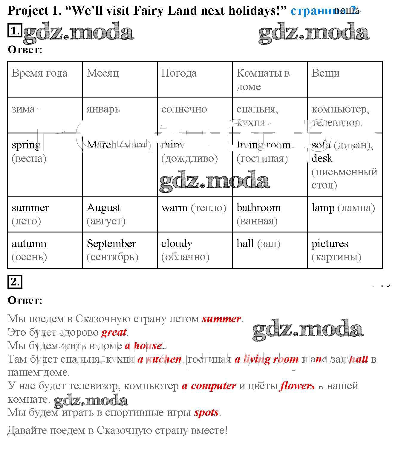 ОТВЕТ на задание № 1 Рабочая тетрадь с контрольными работами по Английскому языку 4 класс Биболетова Enjoy English