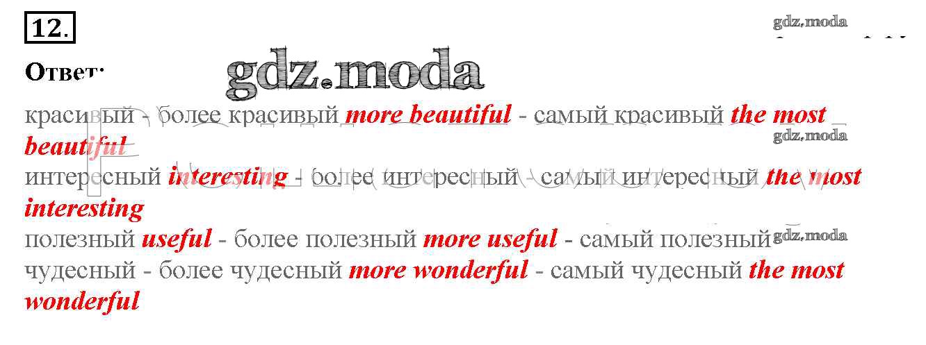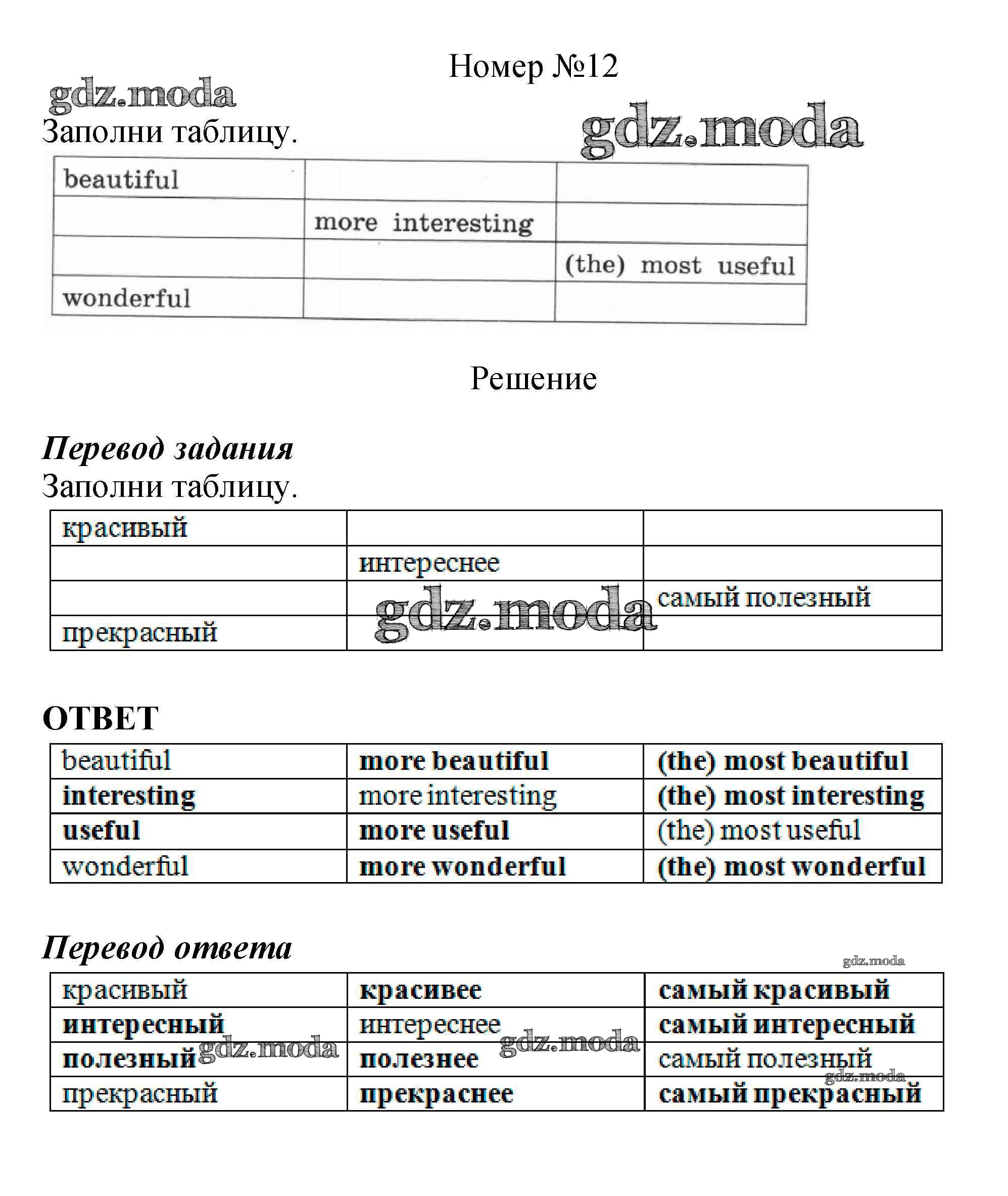 ОТВЕТ на задание № 12 Рабочая тетрадь с контрольными работами по Английскому языку 4 класс Биболетова Enjoy English