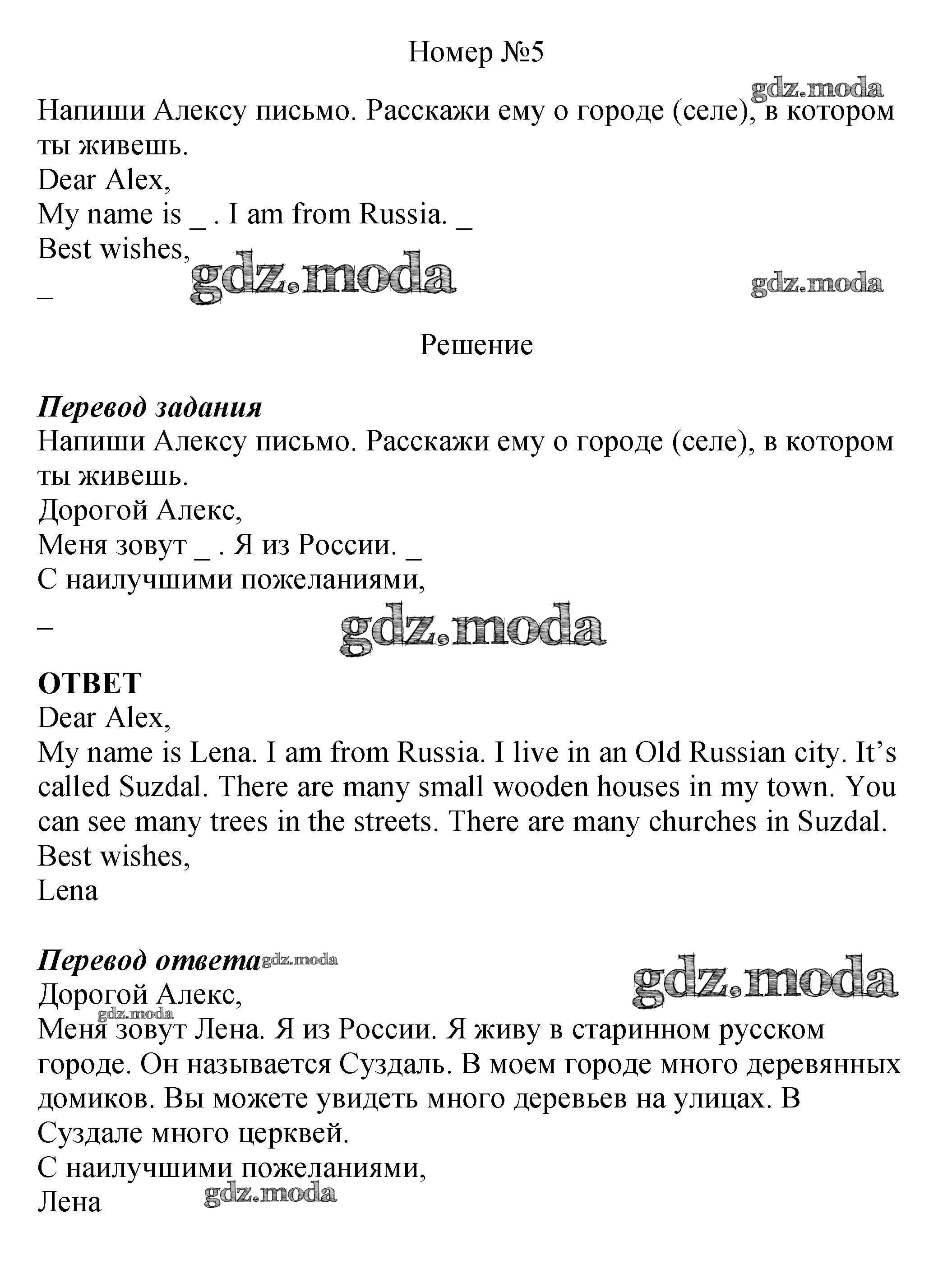 ОТВЕТ на задание № 5 Рабочая тетрадь с контрольными работами по Английскому языку 4 класс Биболетова Enjoy English
