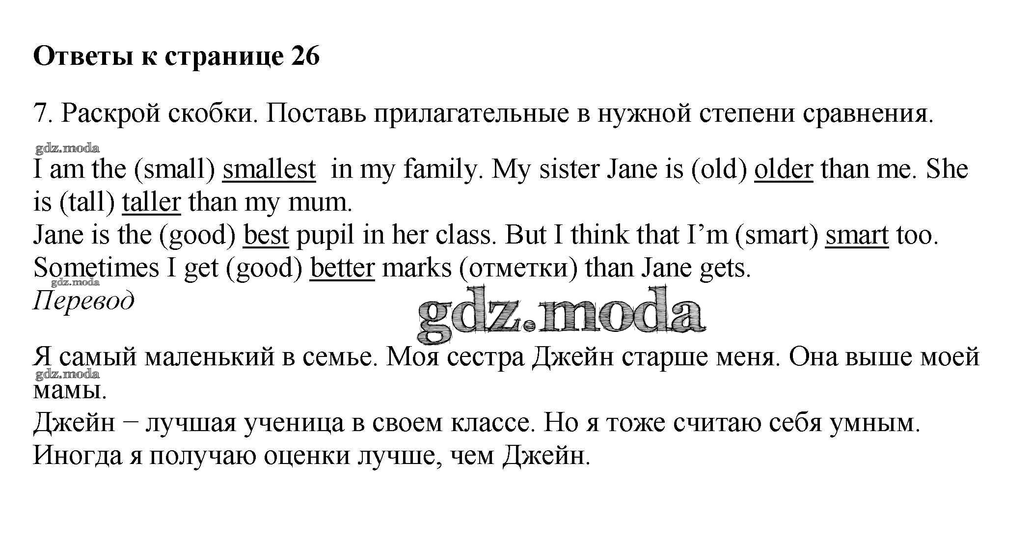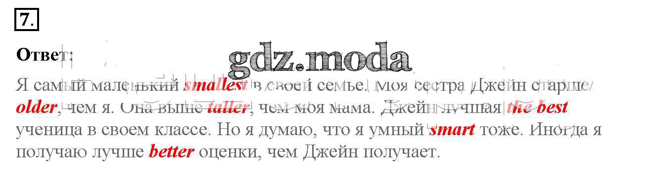 ОТВЕТ на задание № 7 Рабочая тетрадь с контрольными работами по Английскому языку 4 класс Биболетова Enjoy English