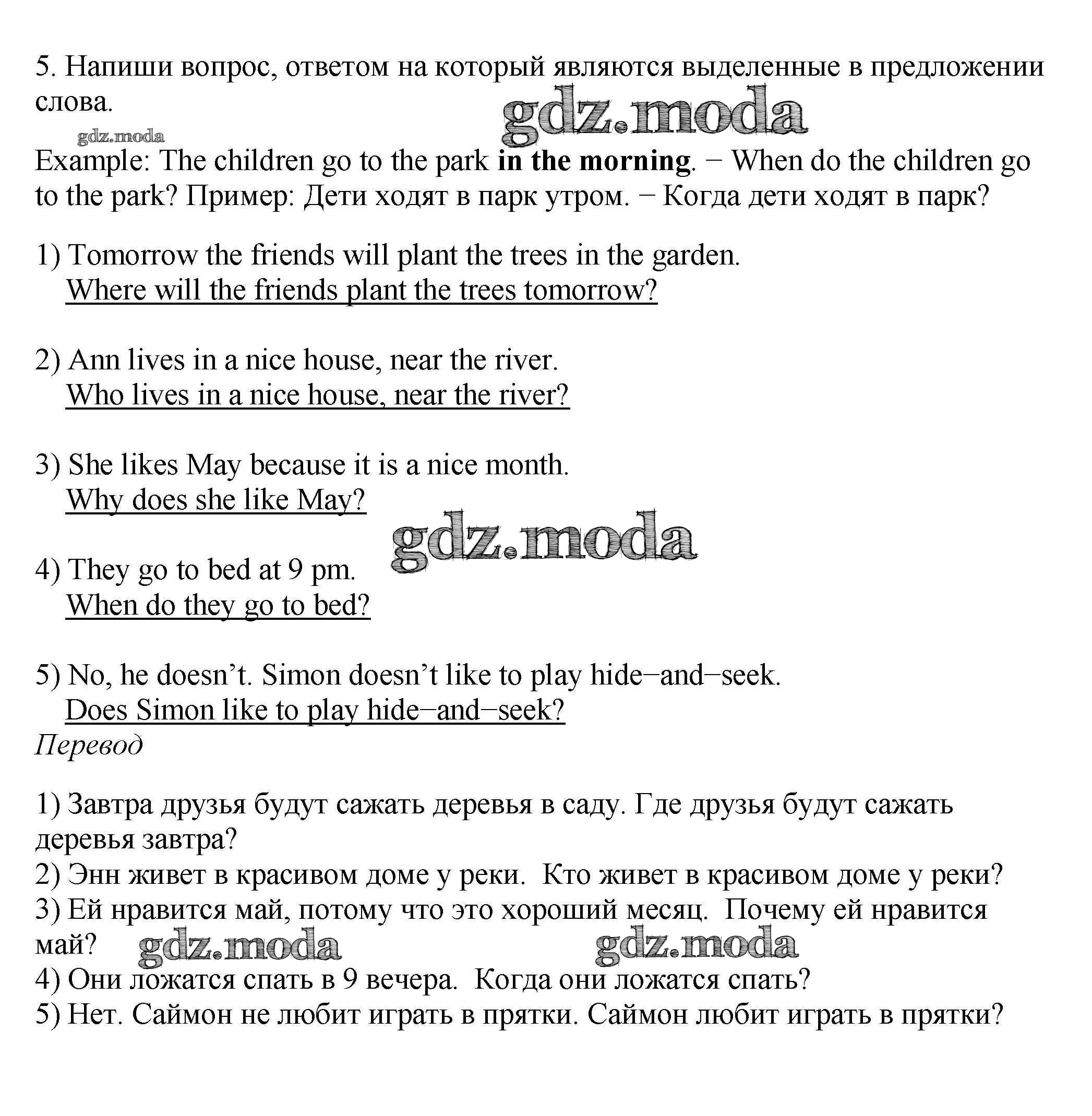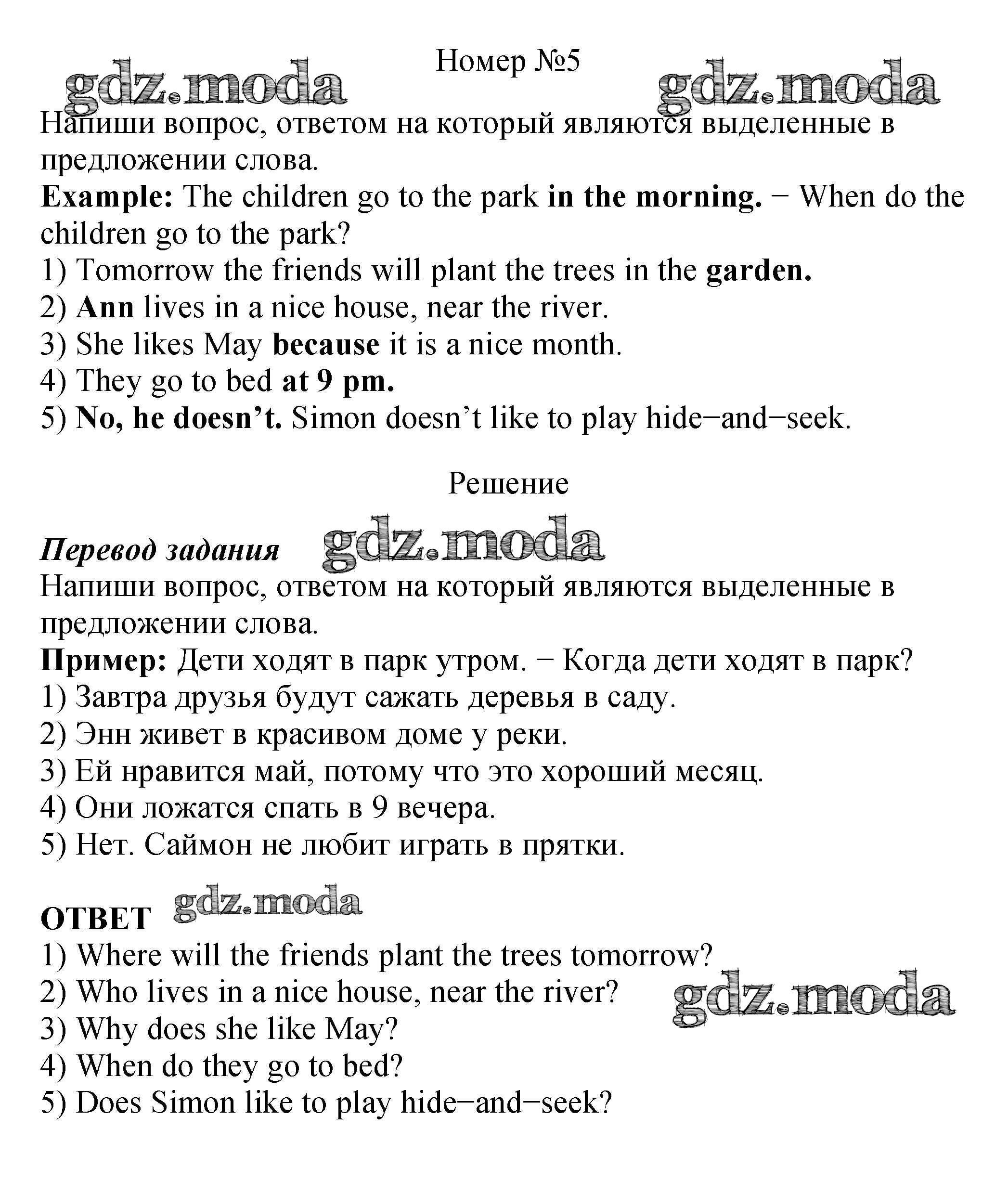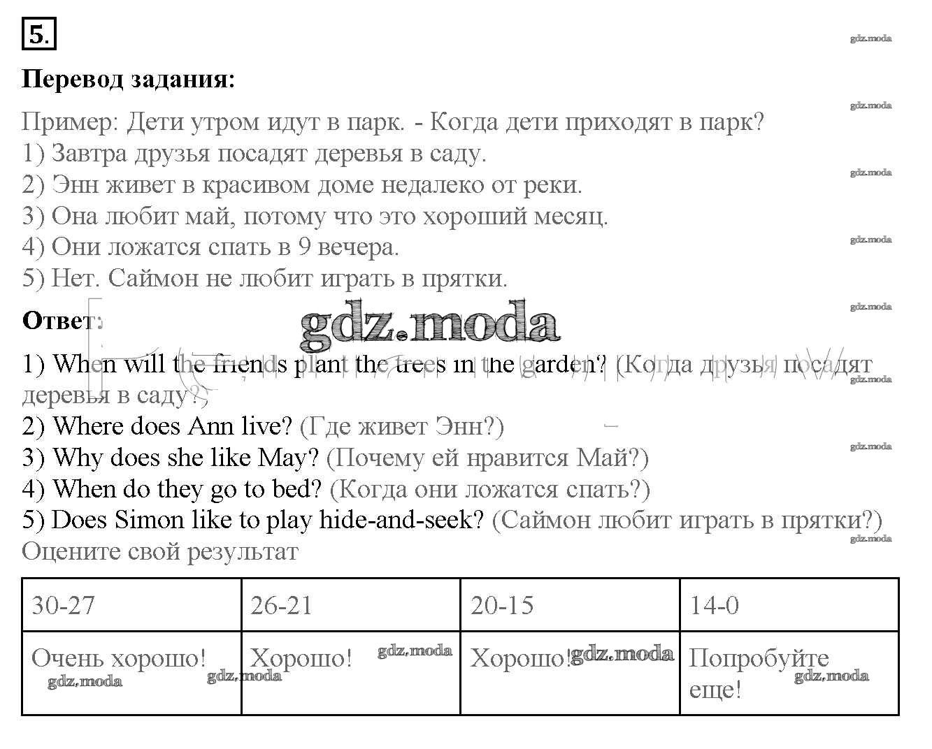 ОТВЕТ на задание № 5 Рабочая тетрадь с контрольными работами по Английскому языку 4 класс Биболетова Enjoy English