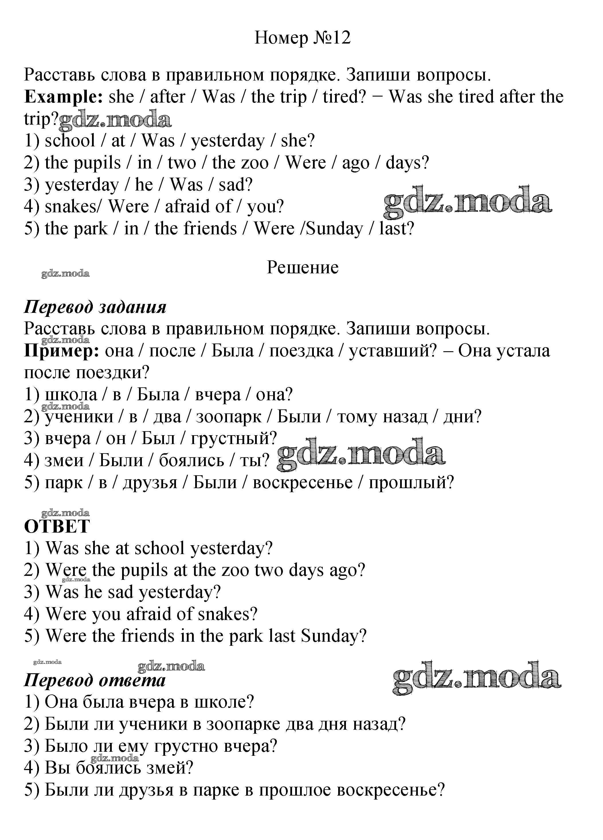 ОТВЕТ на задание № 12 Рабочая тетрадь с контрольными работами по Английскому языку 4 класс Биболетова Enjoy English