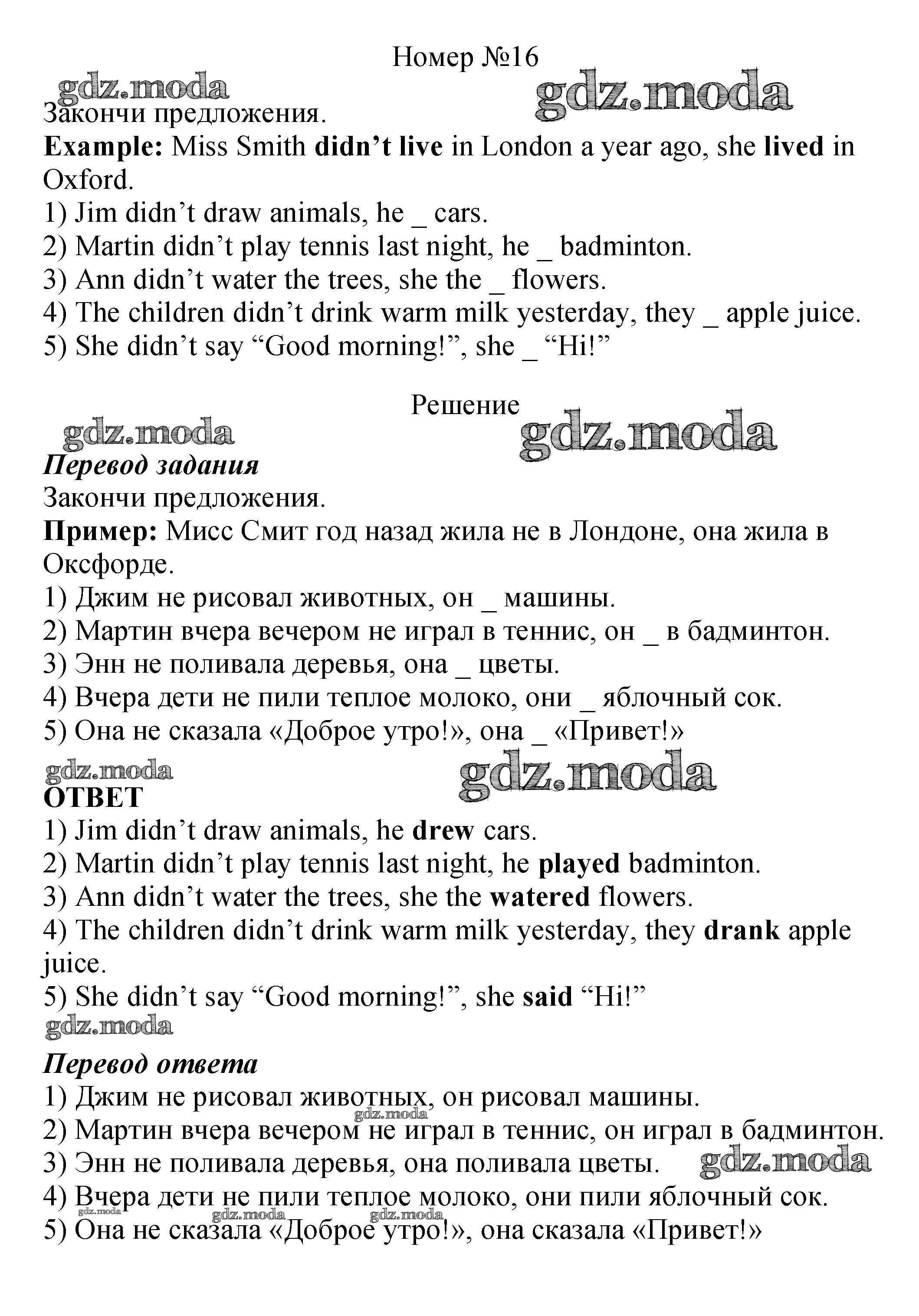 ОТВЕТ на задание № 16 Рабочая тетрадь с контрольными работами по Английскому языку 4 класс Биболетова Enjoy English
