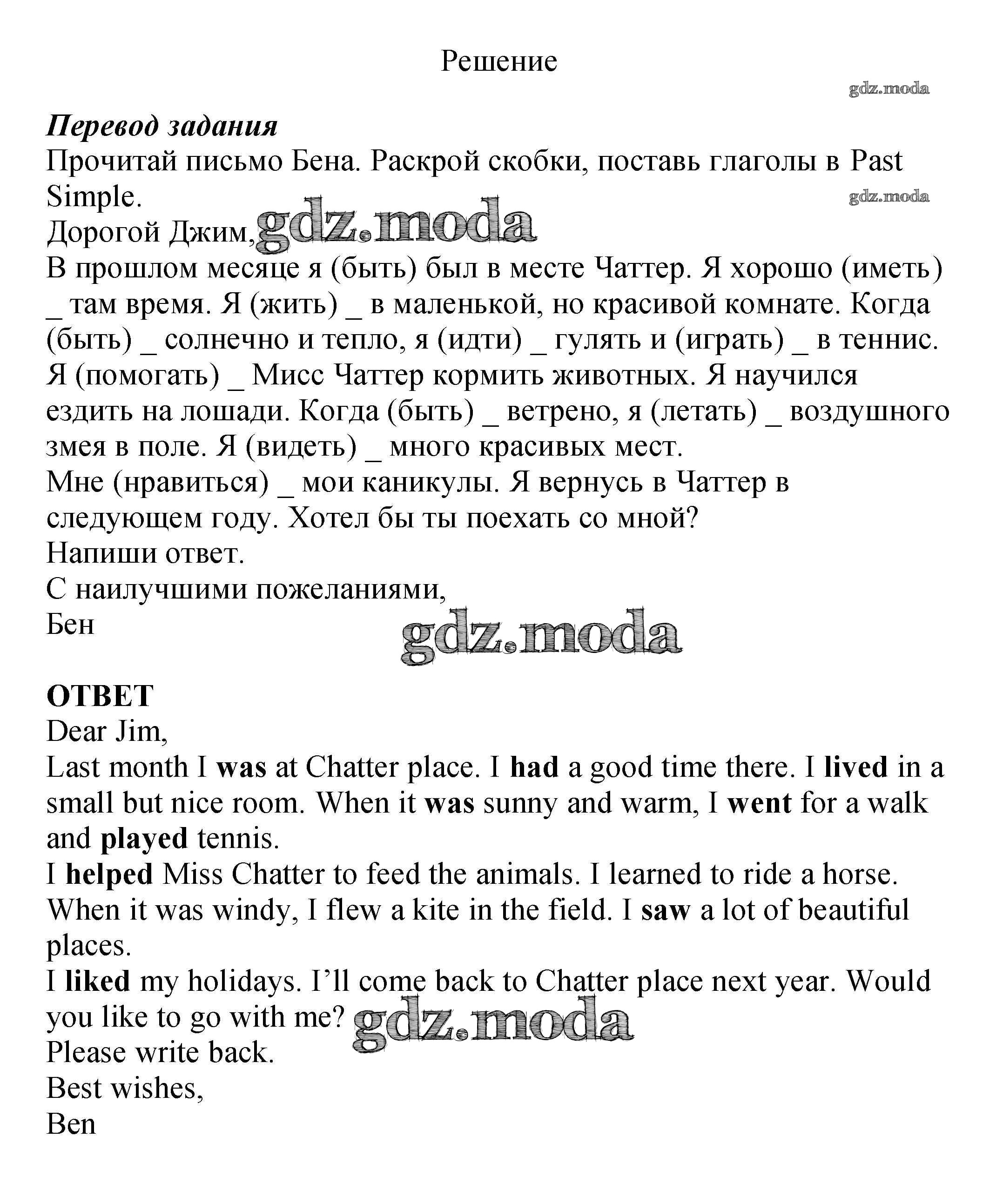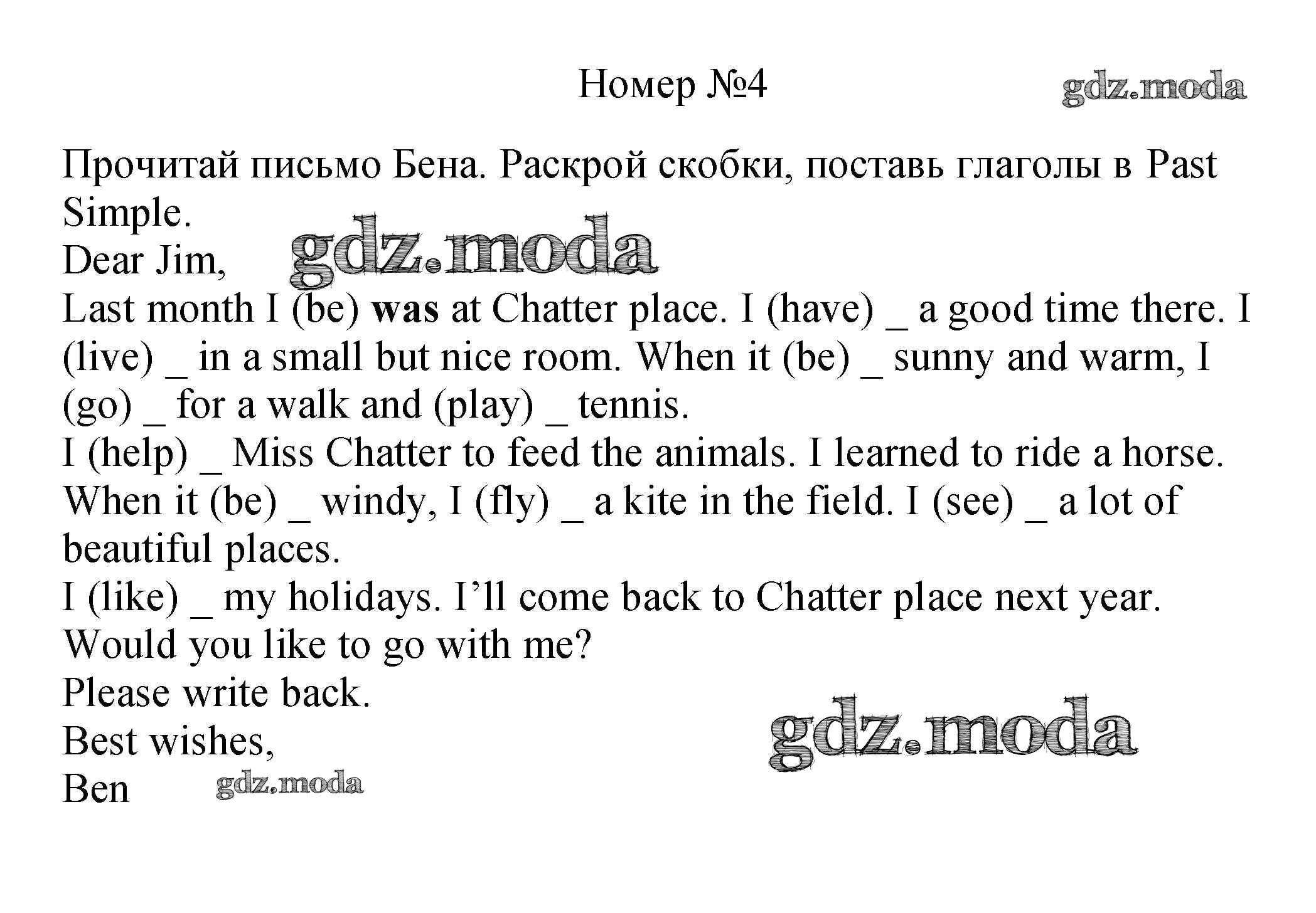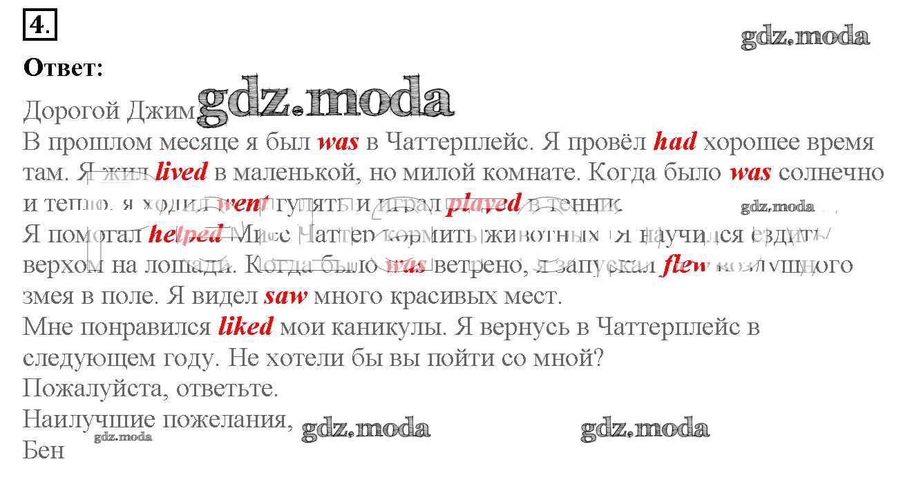 ОТВЕТ на задание № 4 Рабочая тетрадь с контрольными работами по Английскому языку 4 класс Биболетова Enjoy English