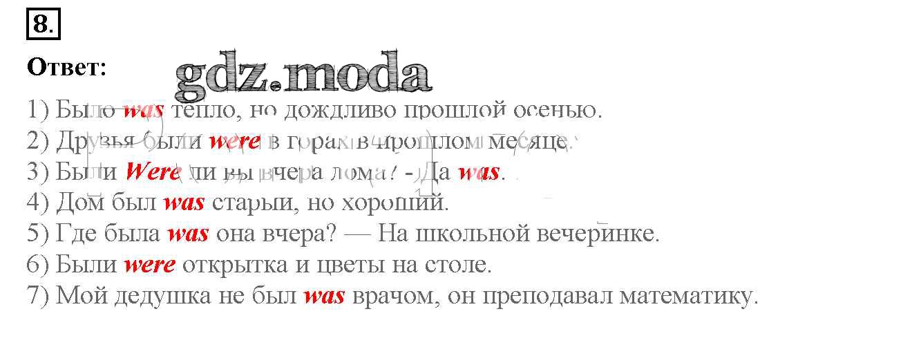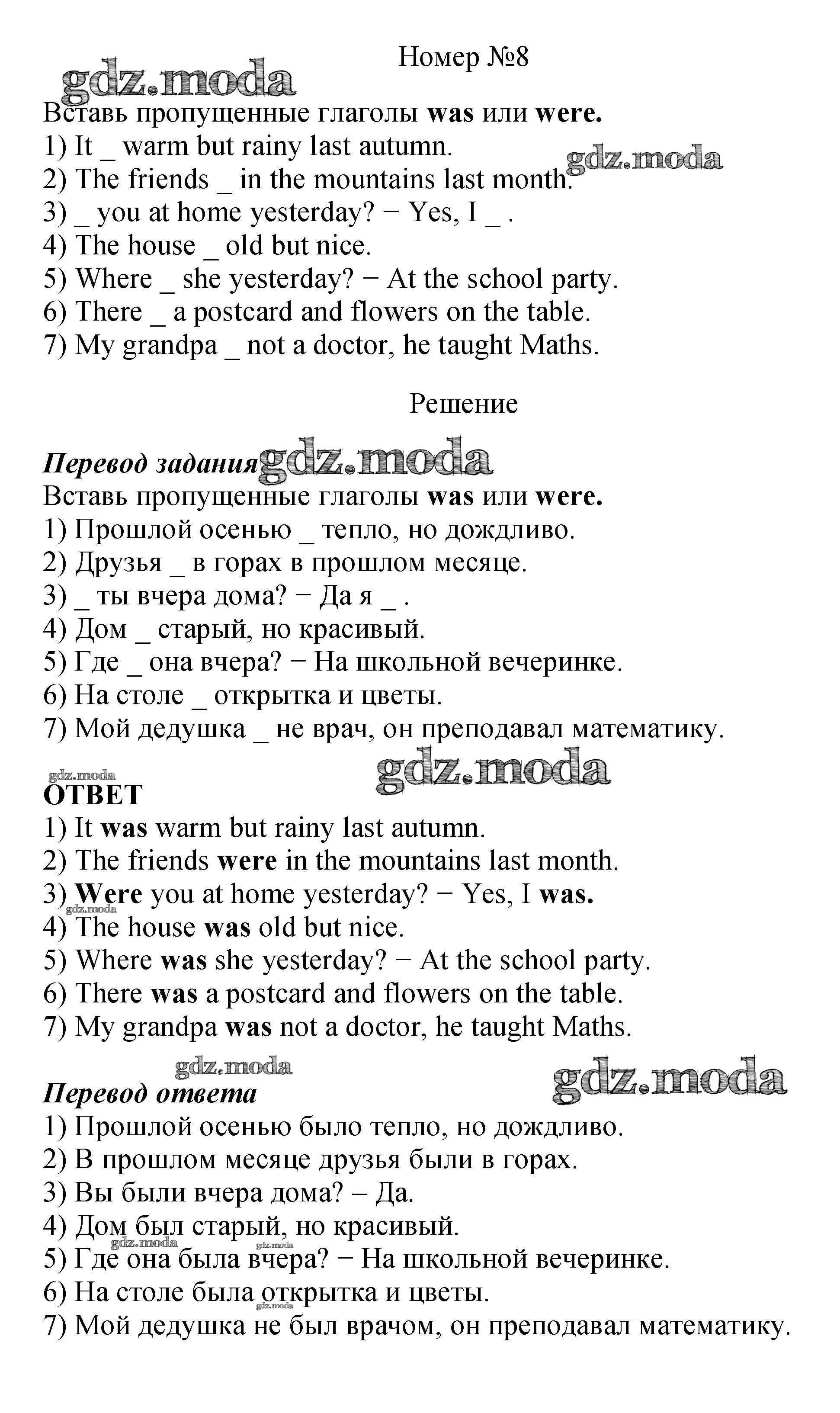 ОТВЕТ на задание № 8 Рабочая тетрадь с контрольными работами по Английскому языку 4 класс Биболетова Enjoy English