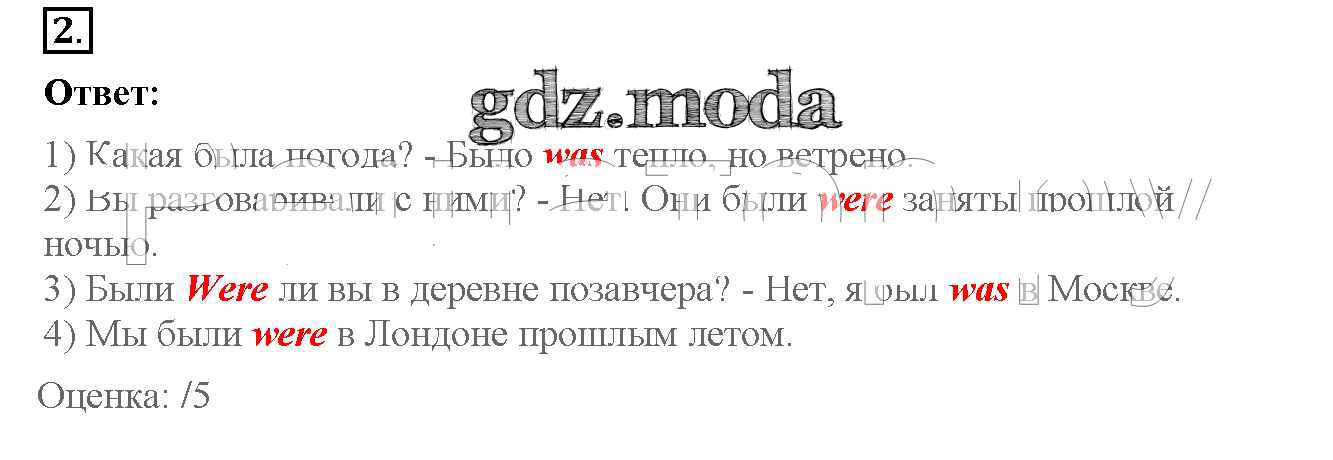 ОТВЕТ на задание № 2 Рабочая тетрадь с контрольными работами по Английскому языку 4 класс Биболетова Enjoy English