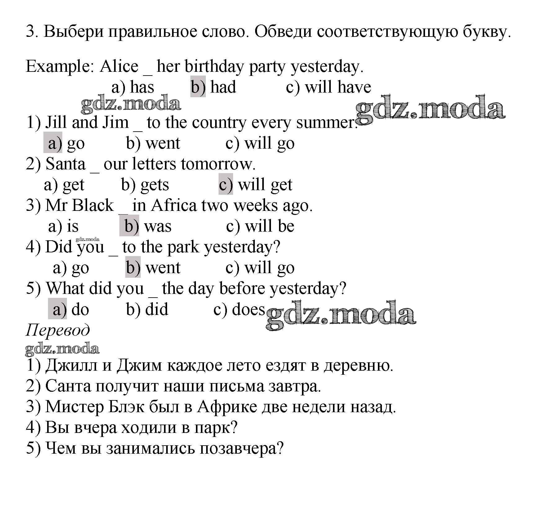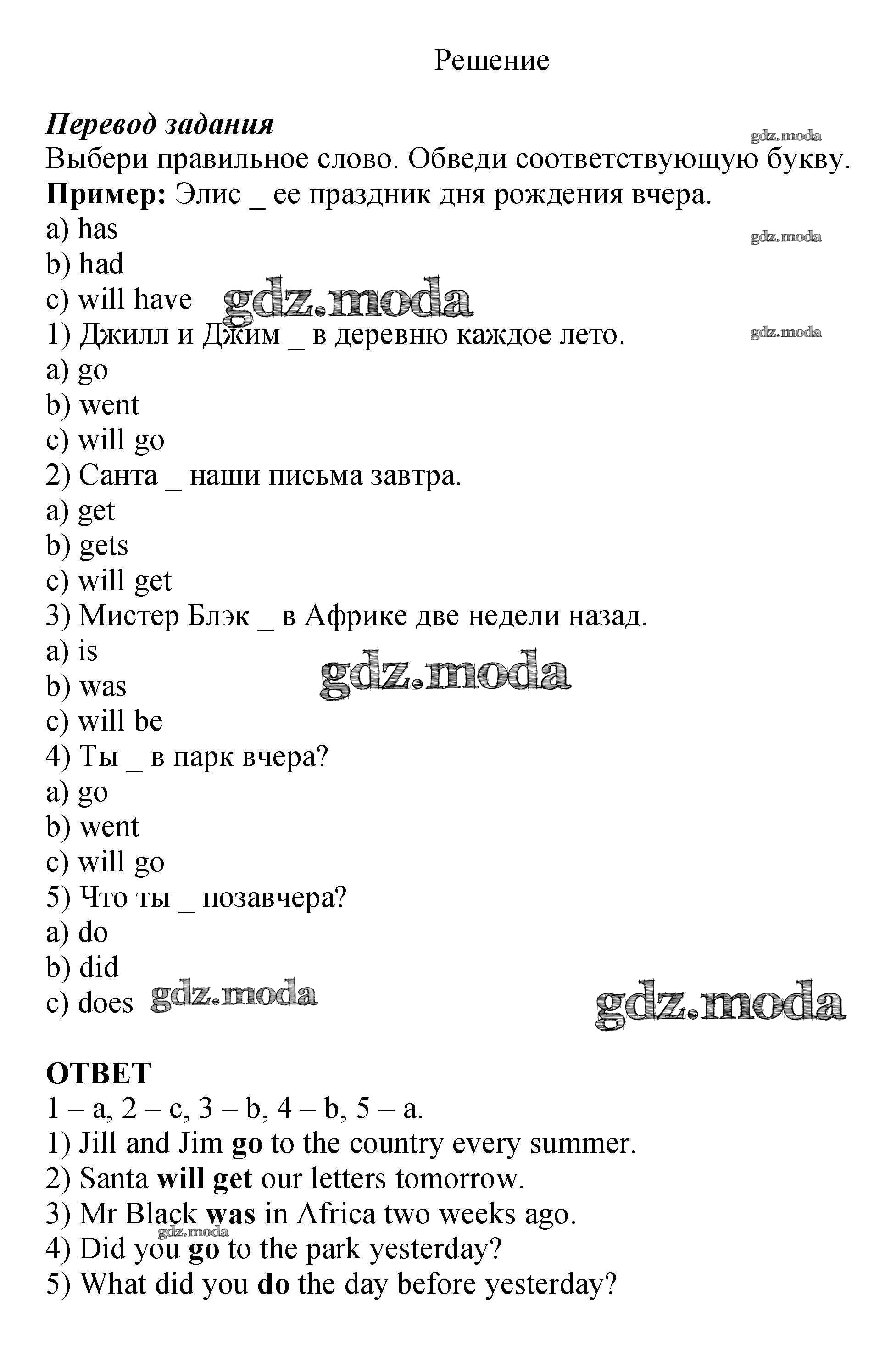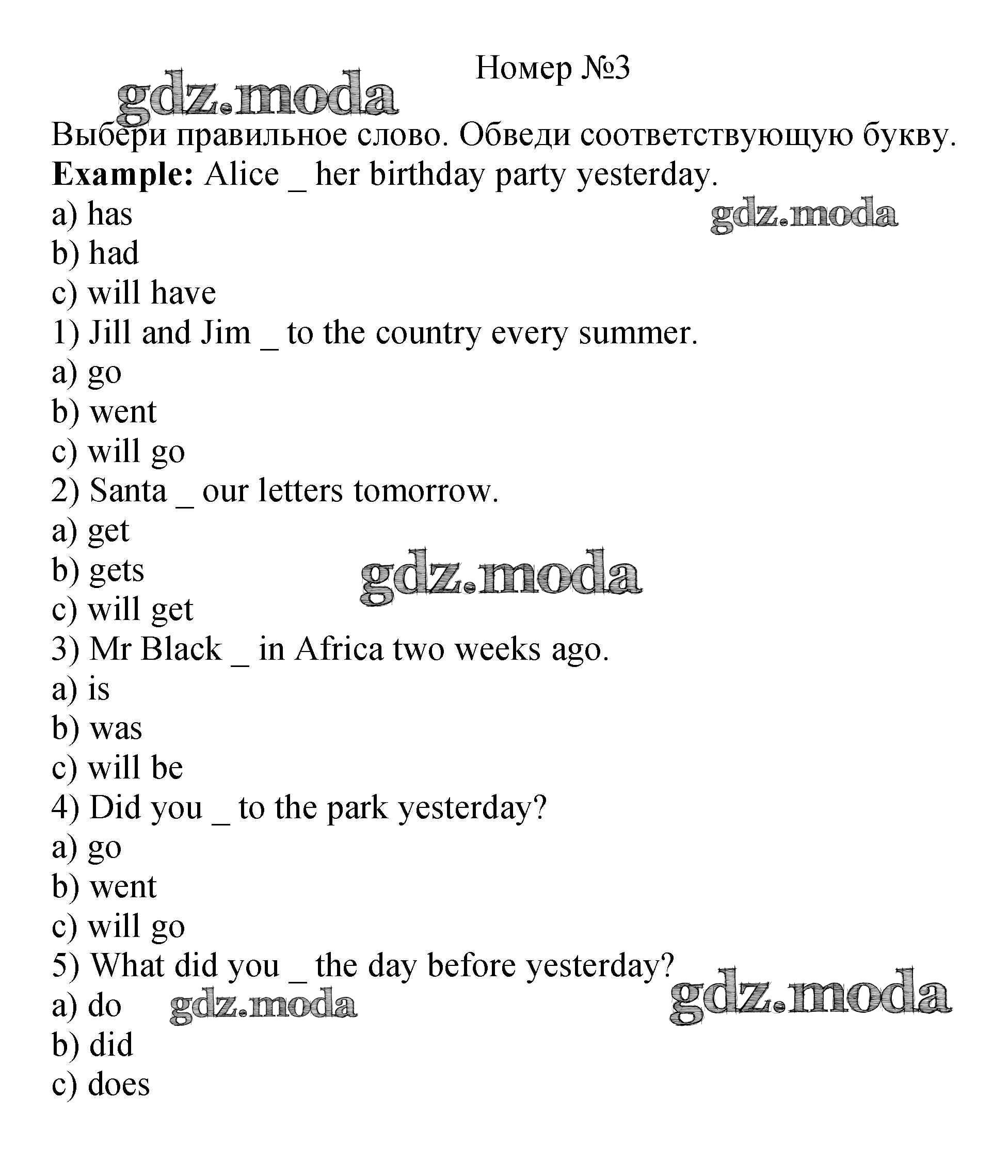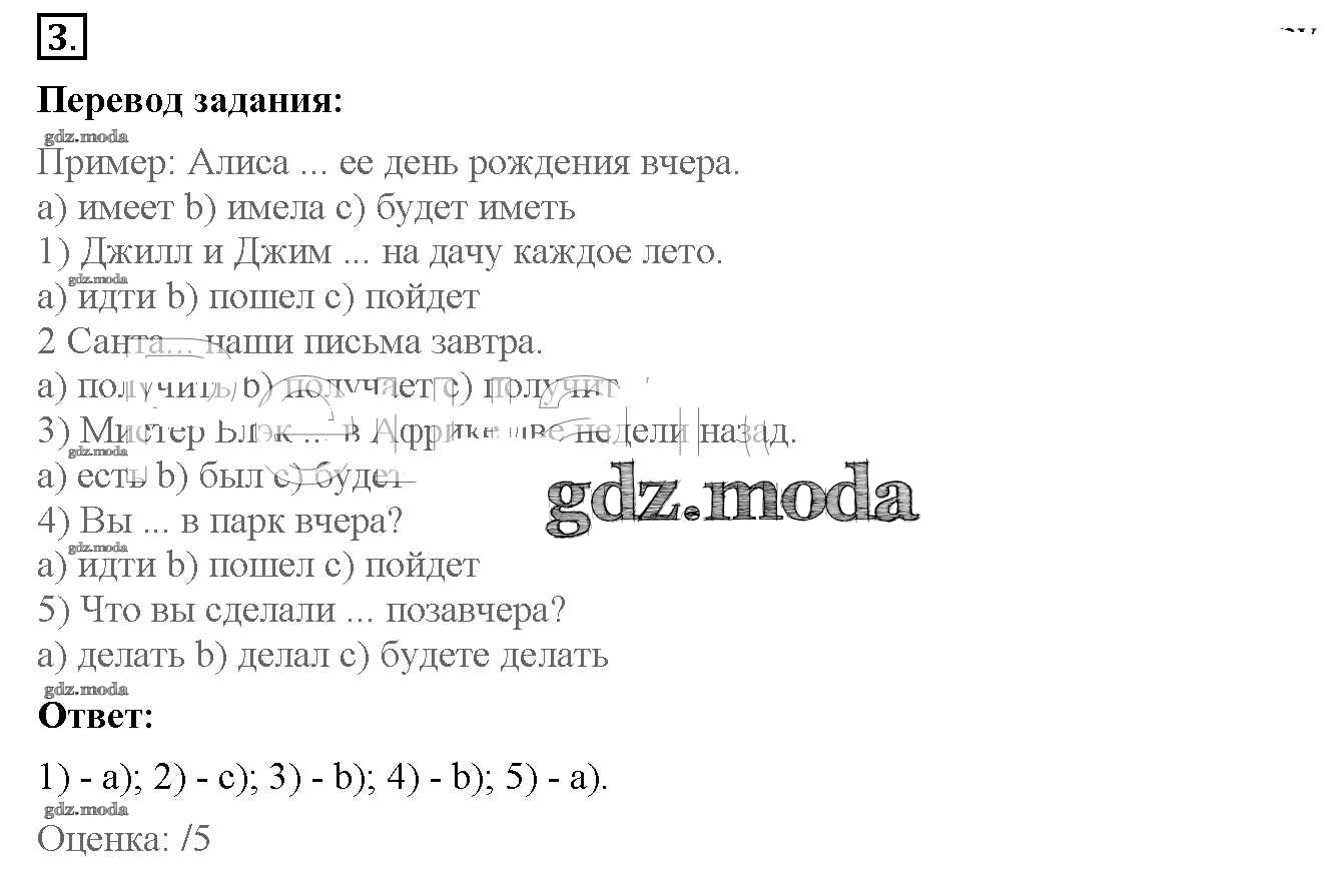 ОТВЕТ на задание № 3 Рабочая тетрадь с контрольными работами по Английскому языку 4 класс Биболетова Enjoy English