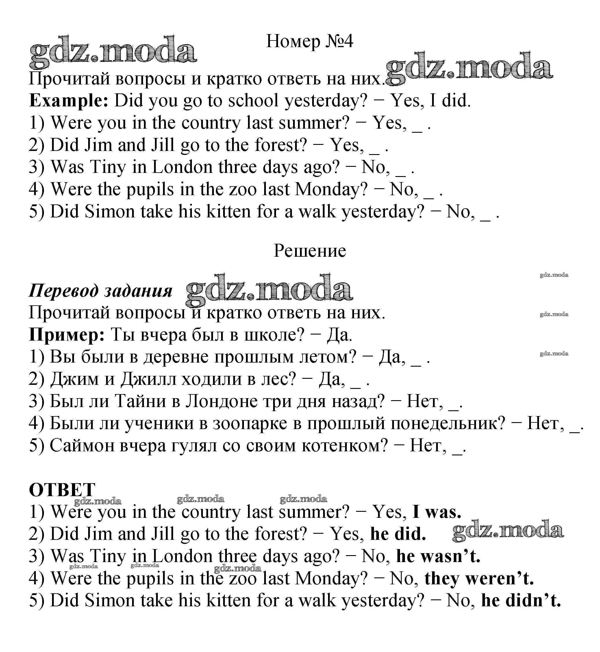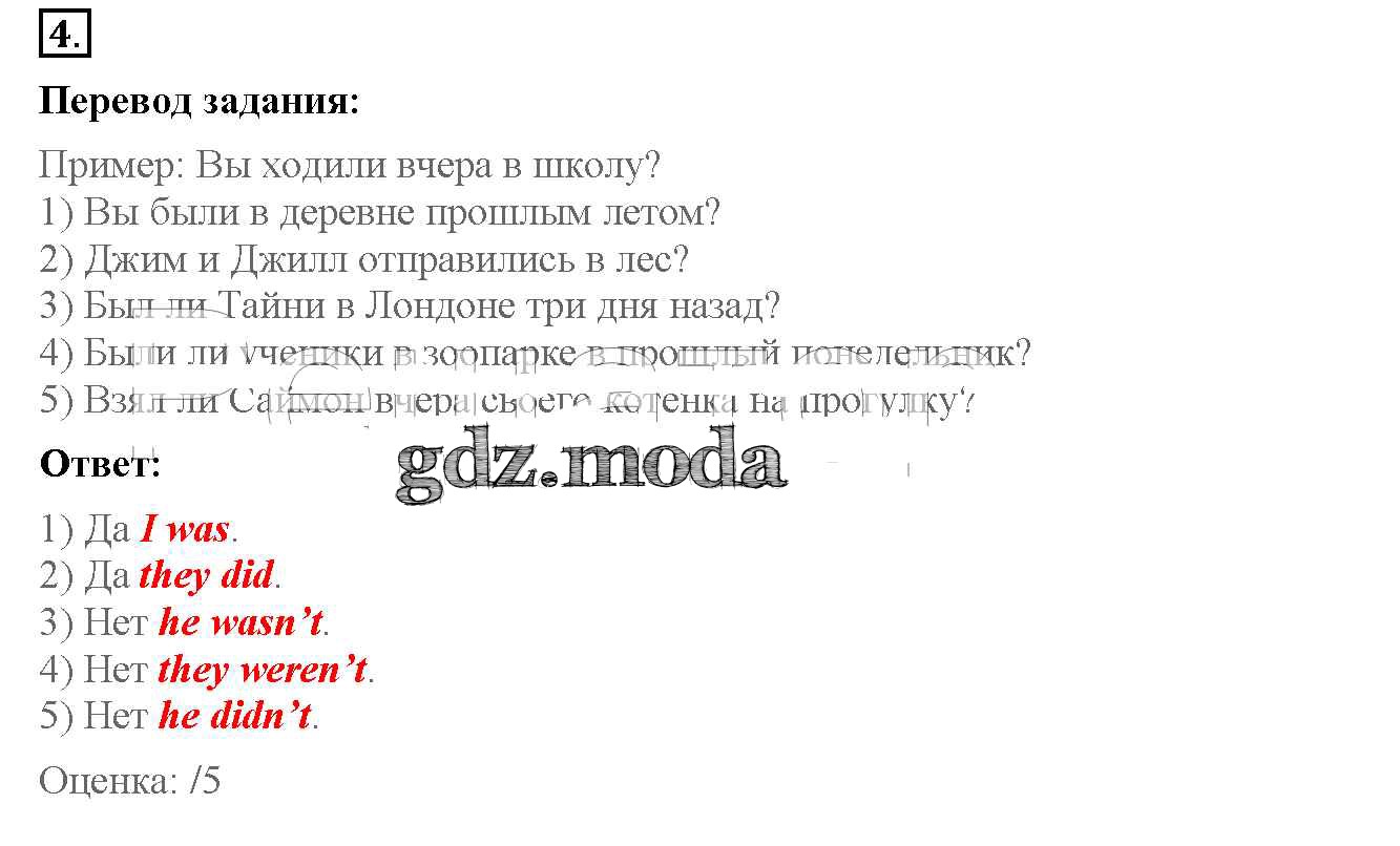 ОТВЕТ на задание № 4 Рабочая тетрадь с контрольными работами по Английскому языку 4 класс Биболетова Enjoy English