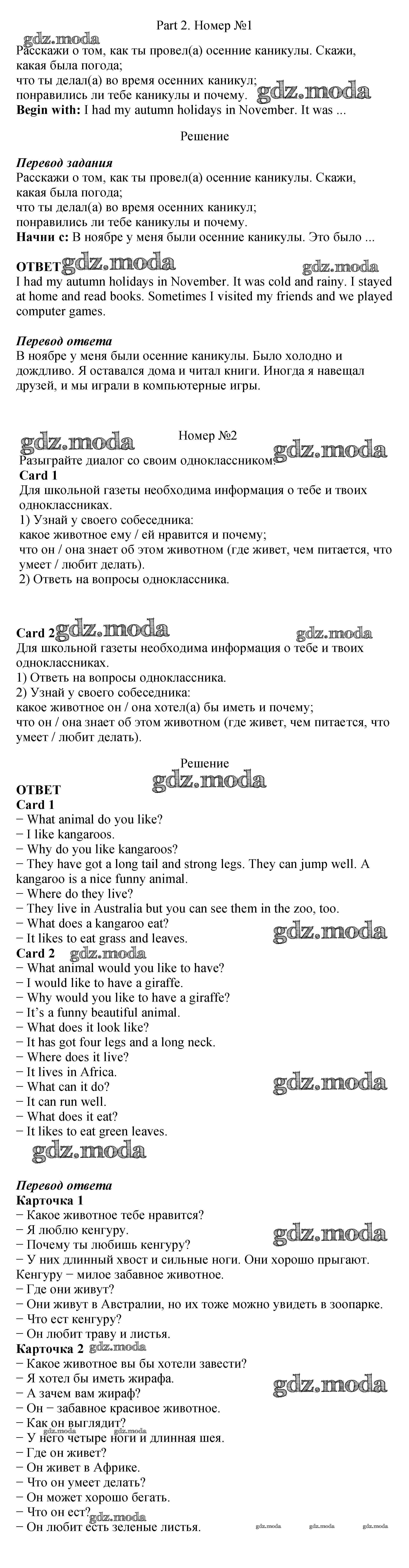 ОТВЕТ на задание № 2 Рабочая тетрадь с контрольными работами по Английскому языку 4 класс Биболетова Enjoy English