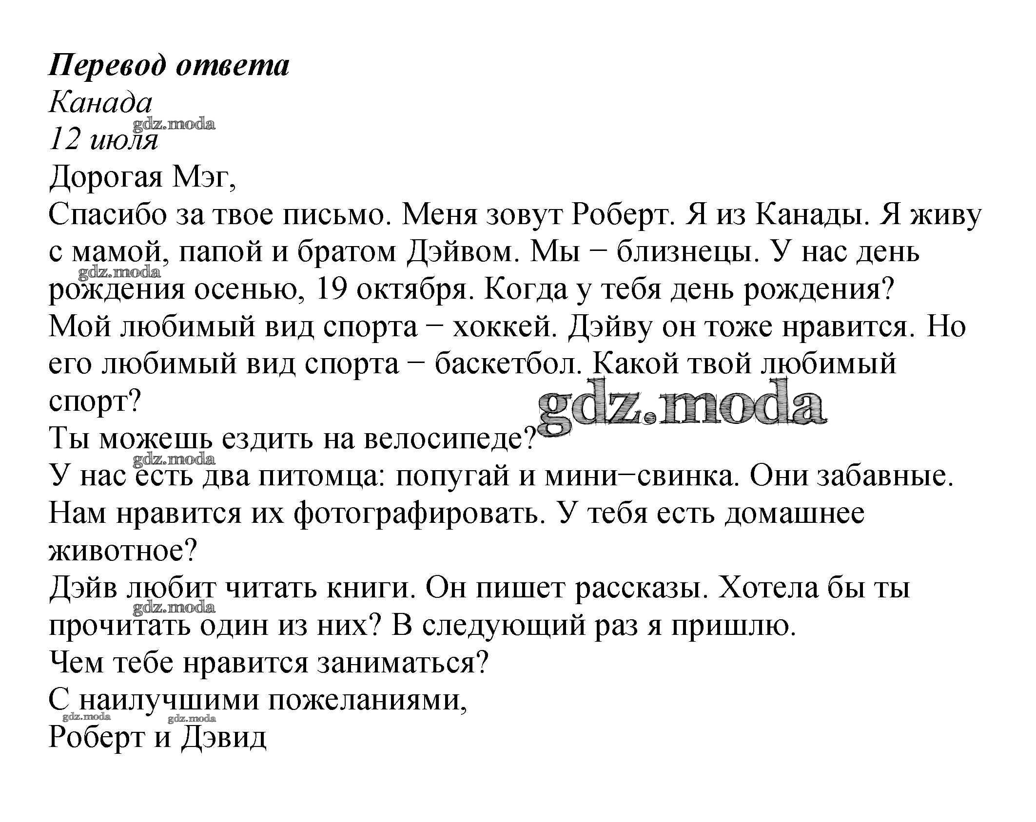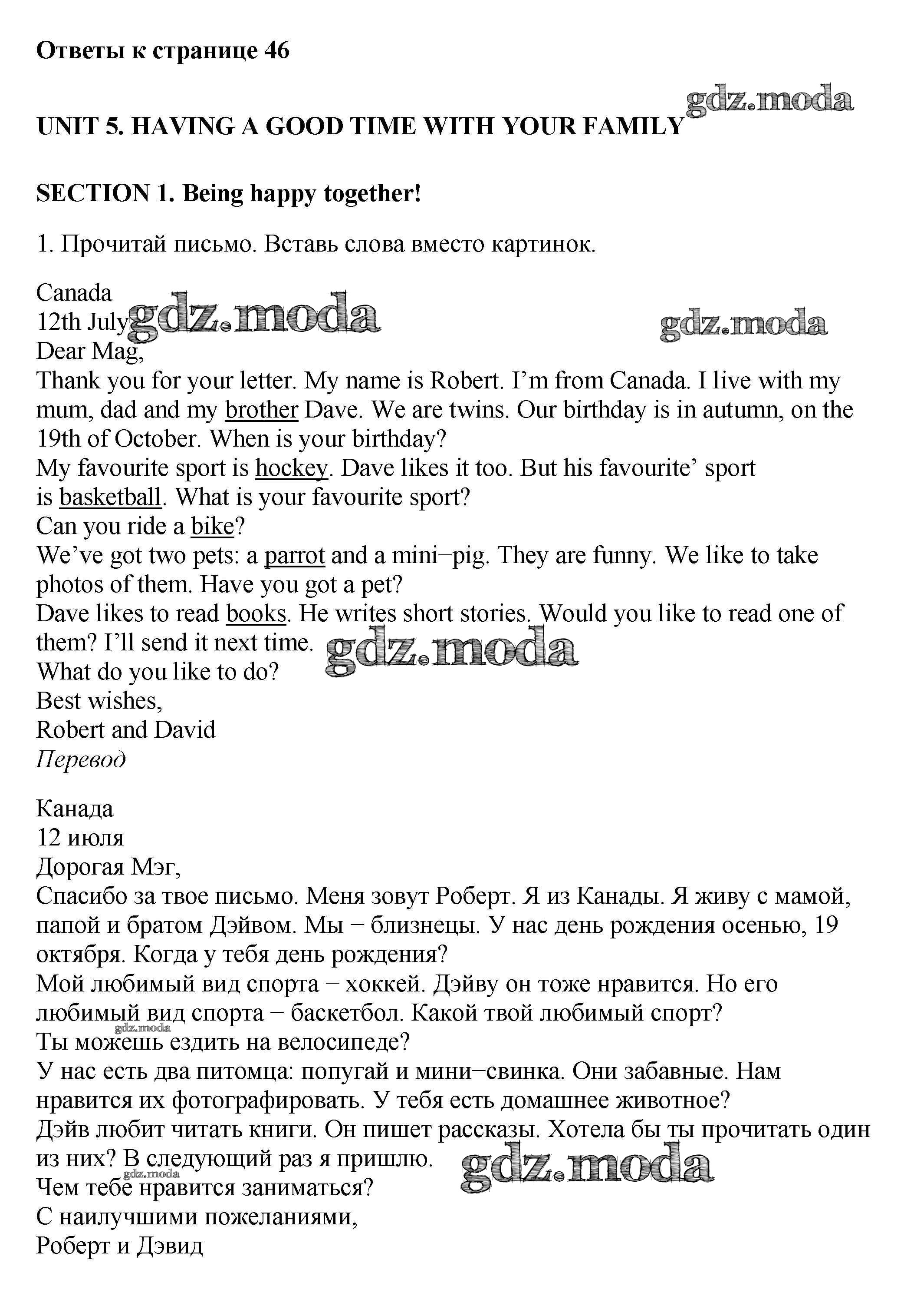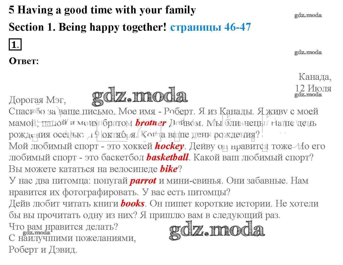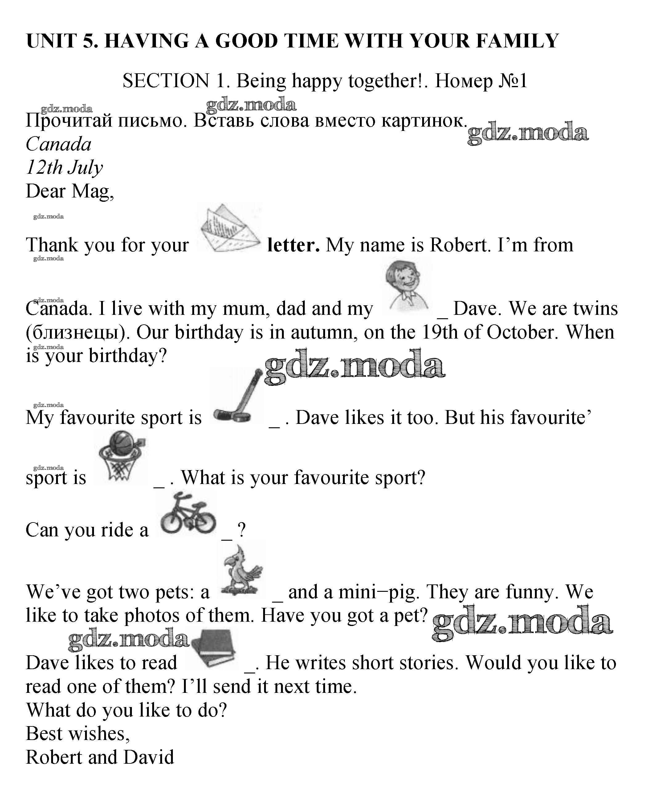 ОТВЕТ на задание № 1 Рабочая тетрадь с контрольными работами по Английскому языку 4 класс Биболетова Enjoy English