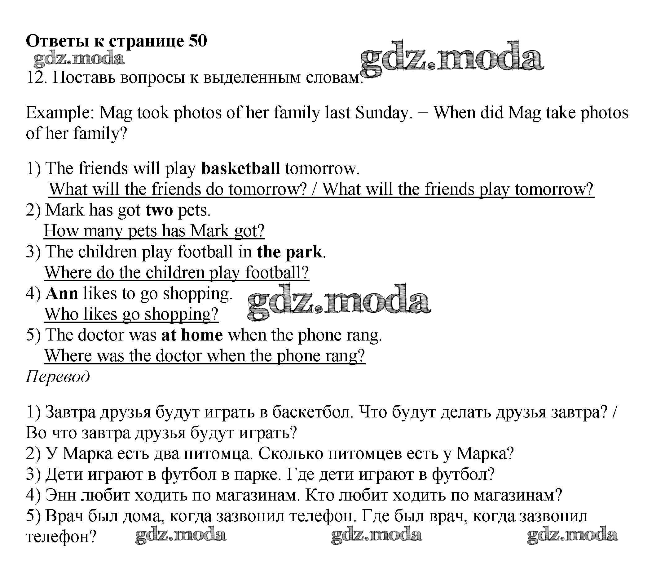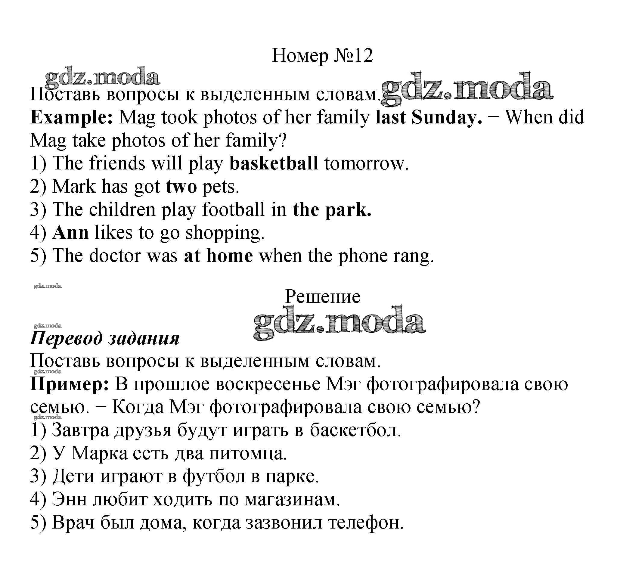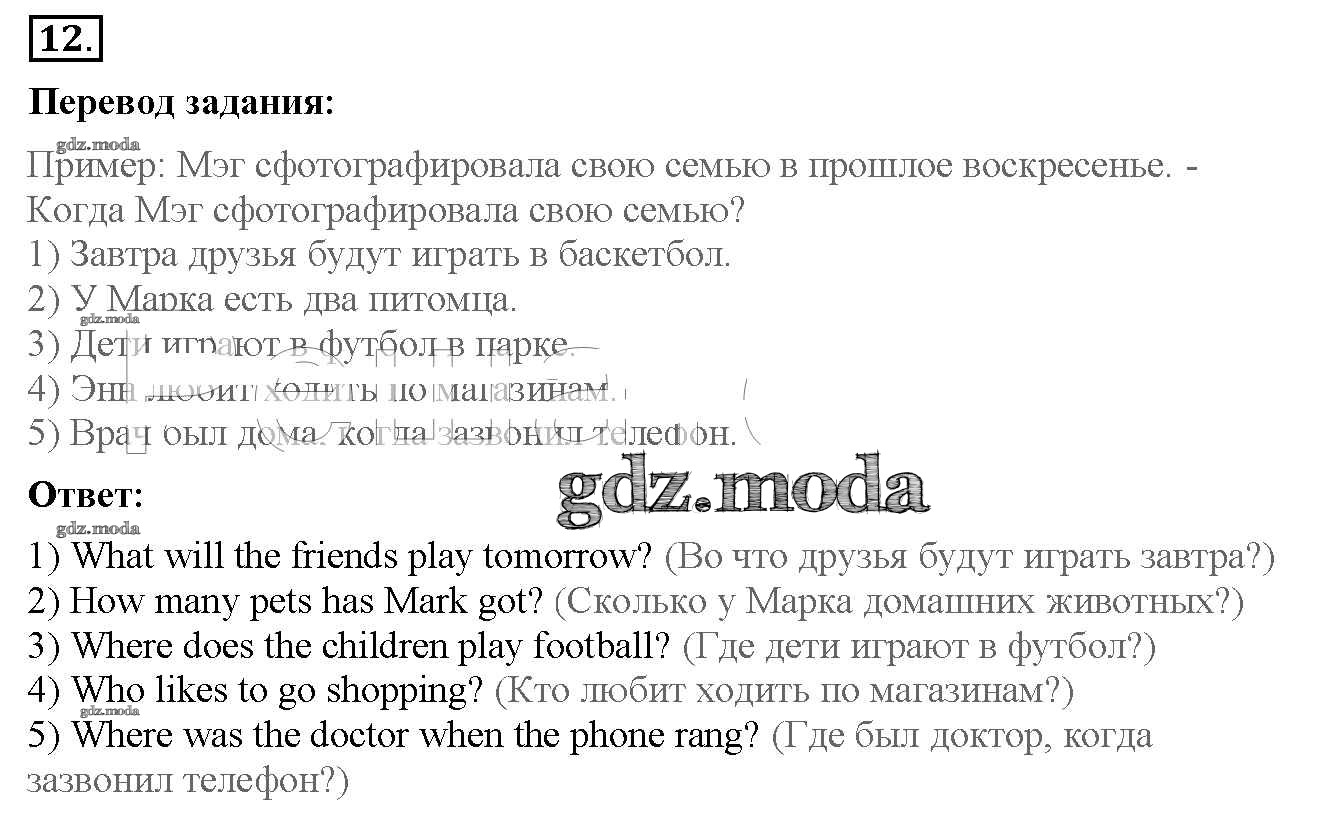 ОТВЕТ на задание № 12 Рабочая тетрадь с контрольными работами по Английскому языку 4 класс Биболетова Enjoy English