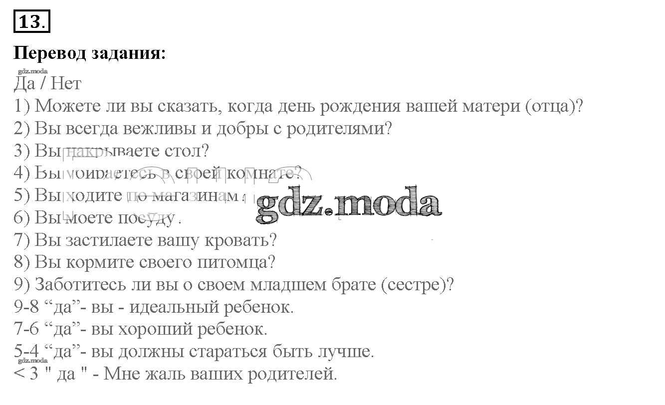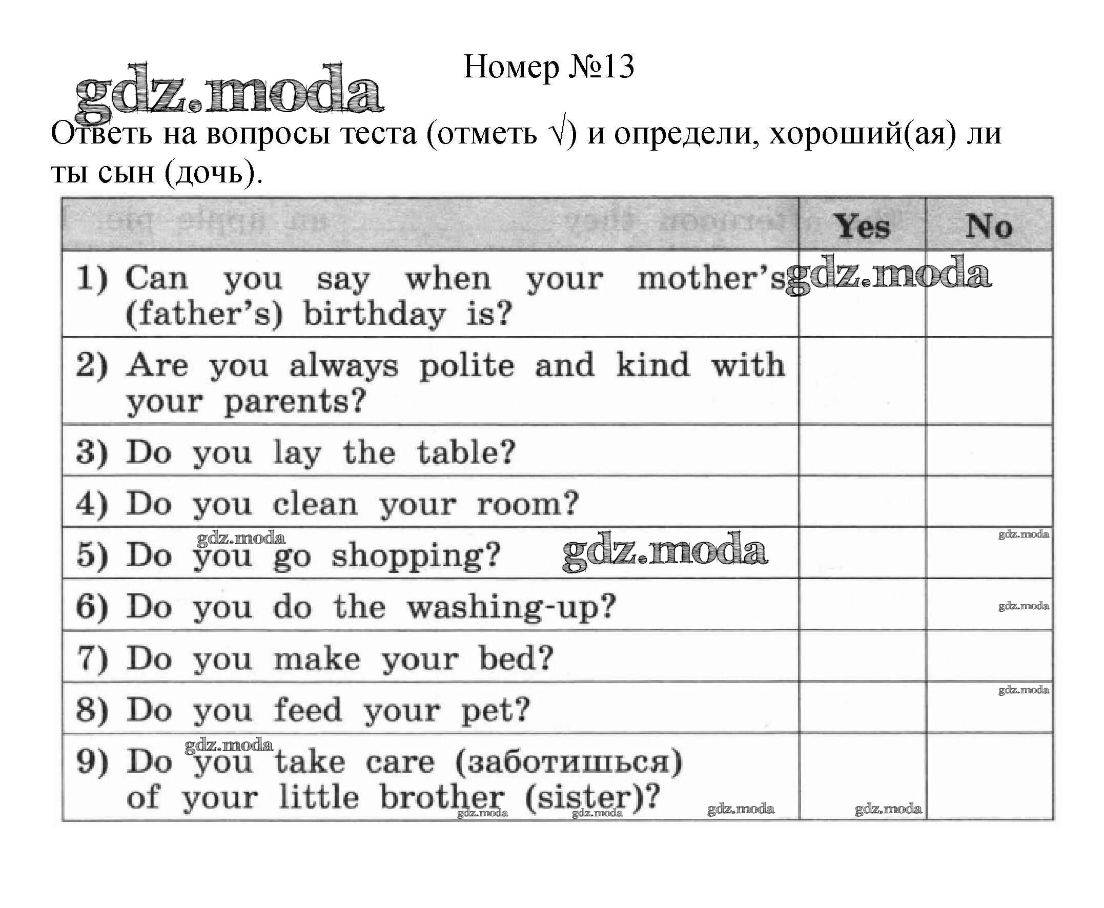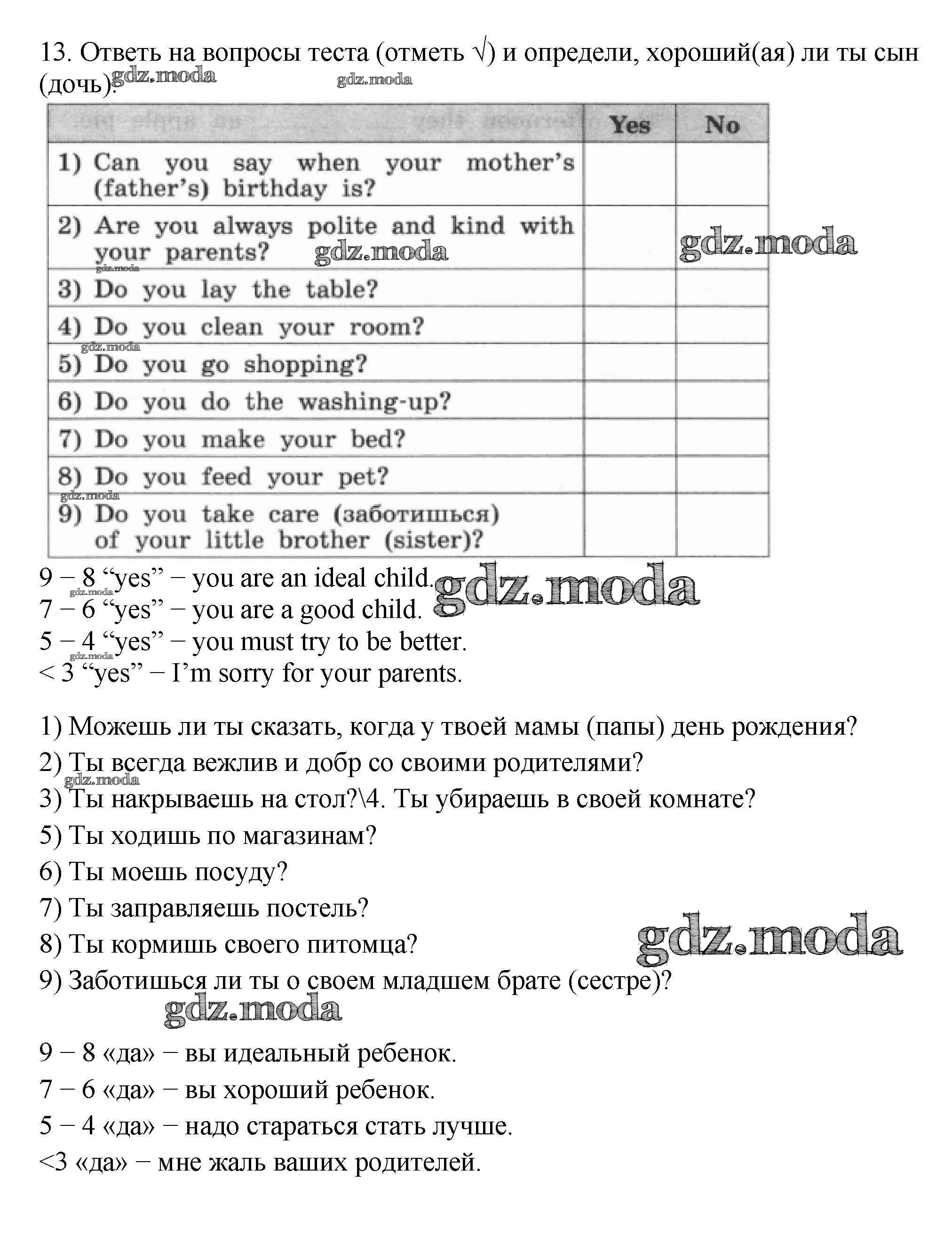 ОТВЕТ на задание № 13 Рабочая тетрадь с контрольными работами по Английскому языку 4 класс Биболетова Enjoy English