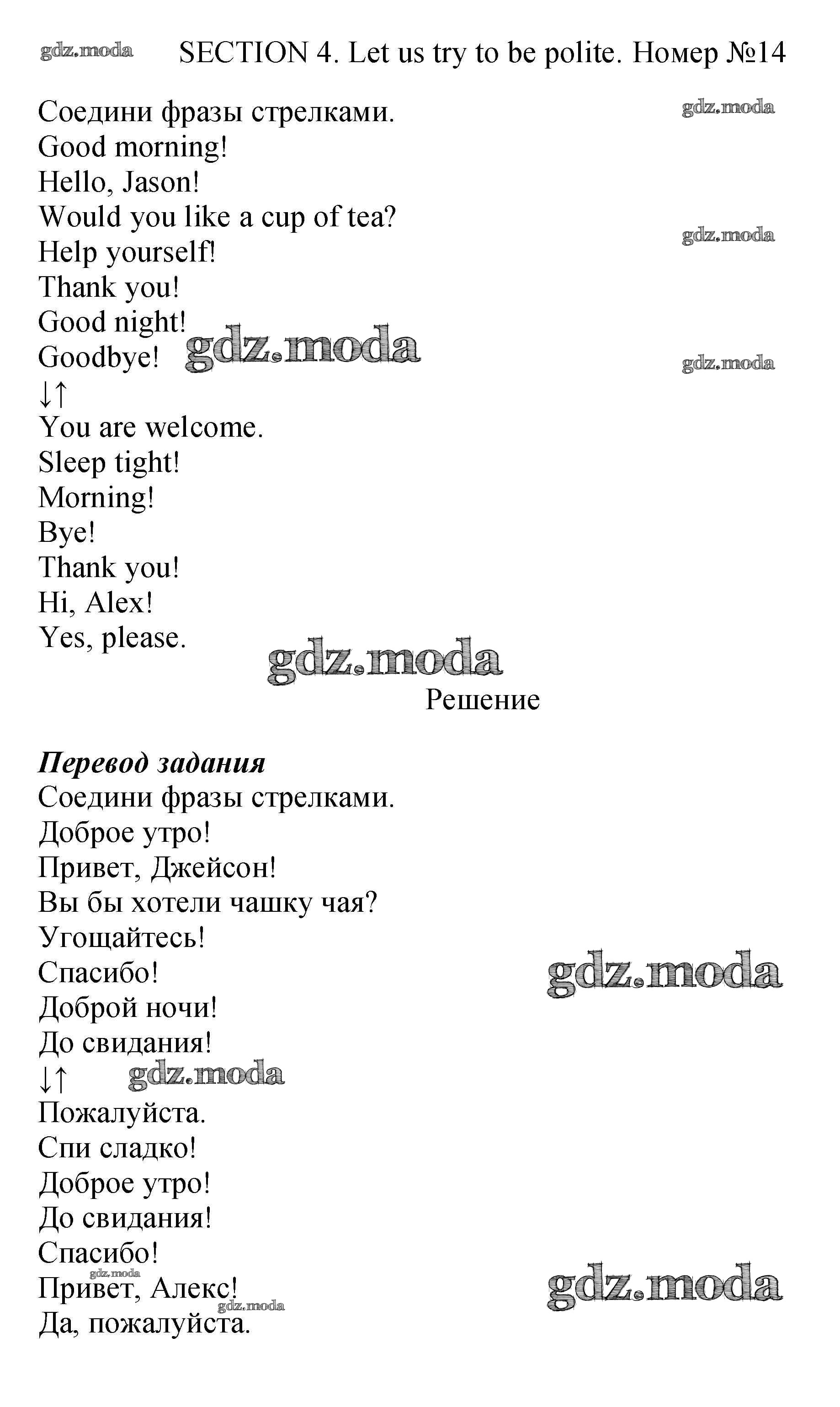 ОТВЕТ на задание № 14 Рабочая тетрадь с контрольными работами по Английскому языку 4 класс Биболетова Enjoy English