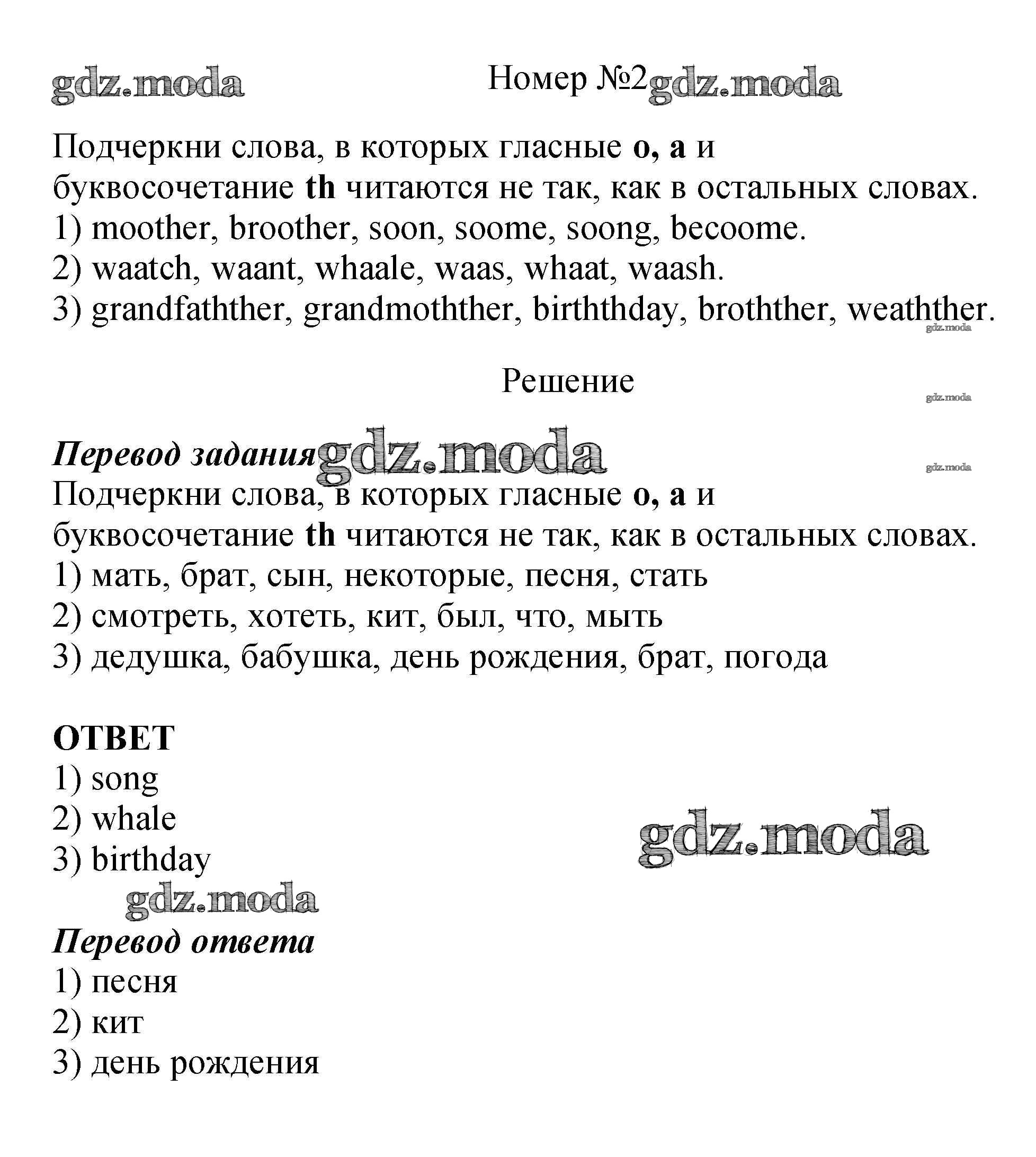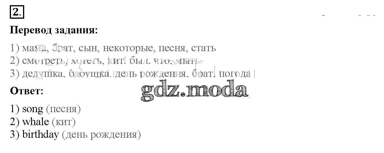 ОТВЕТ на задание № 2 Рабочая тетрадь с контрольными работами по Английскому языку 4 класс Биболетова Enjoy English