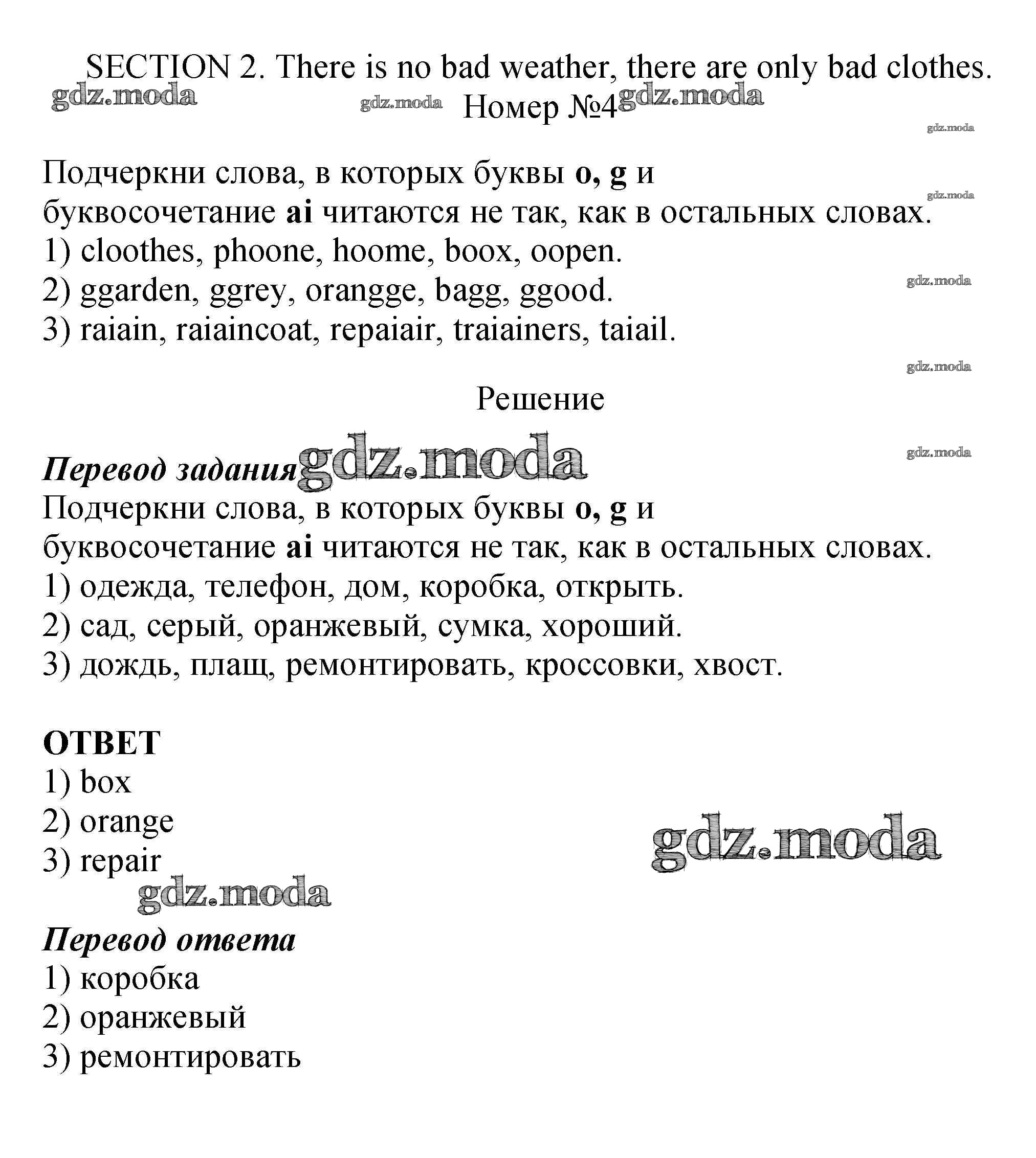 ОТВЕТ на задание № 4 Рабочая тетрадь с контрольными работами по Английскому языку 4 класс Биболетова Enjoy English