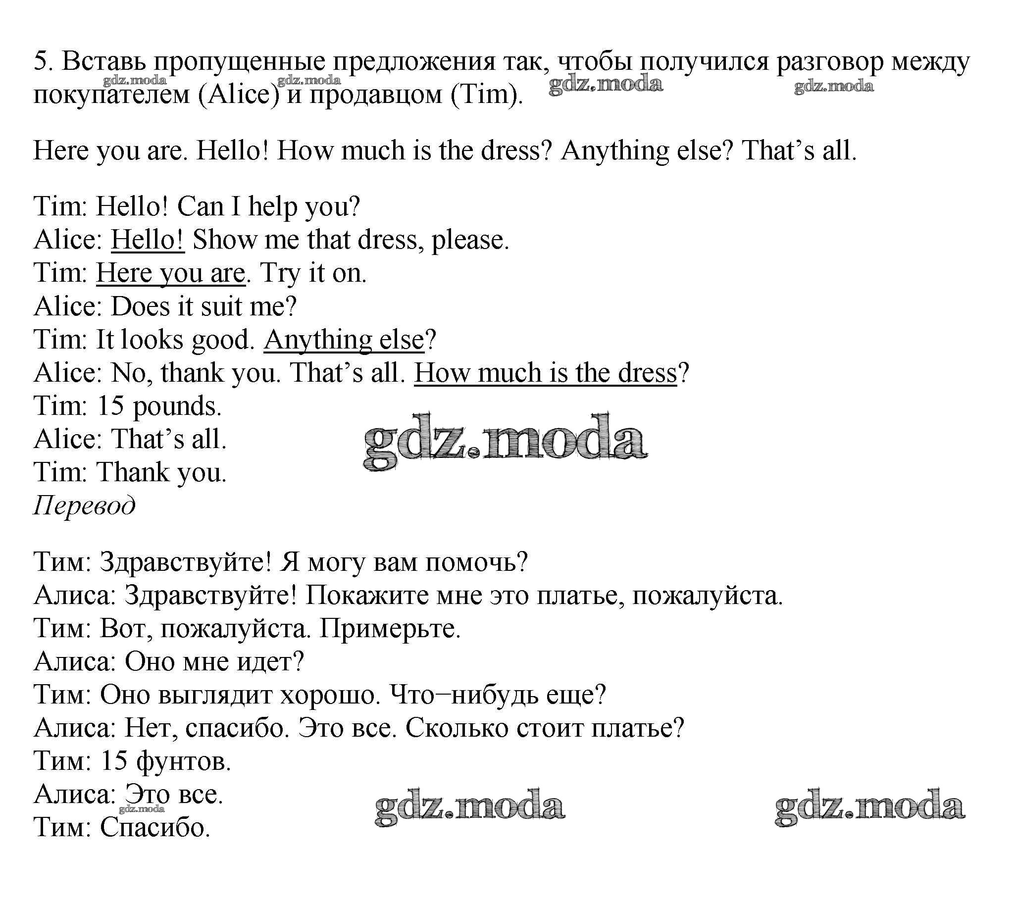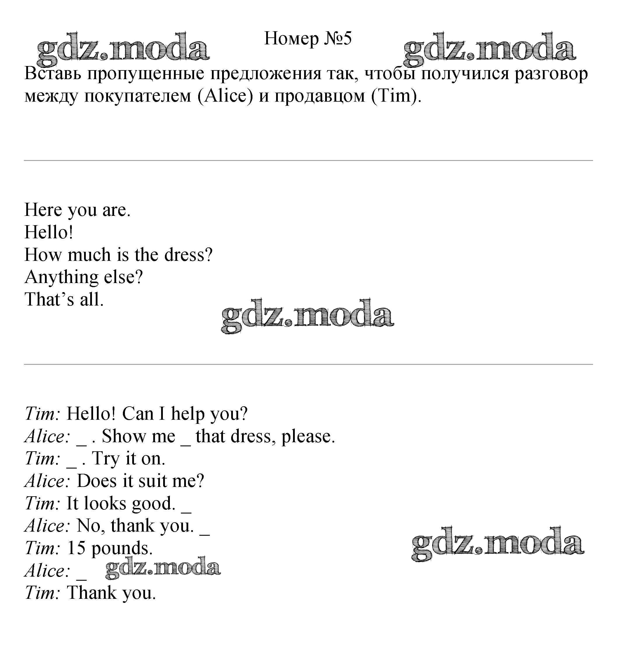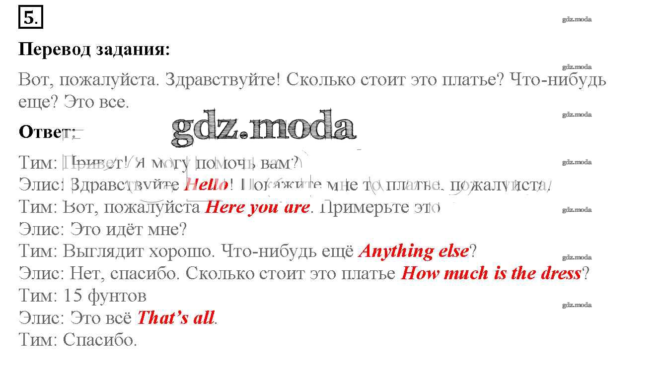 ОТВЕТ на задание № 5 Рабочая тетрадь с контрольными работами по Английскому языку 4 класс Биболетова Enjoy English