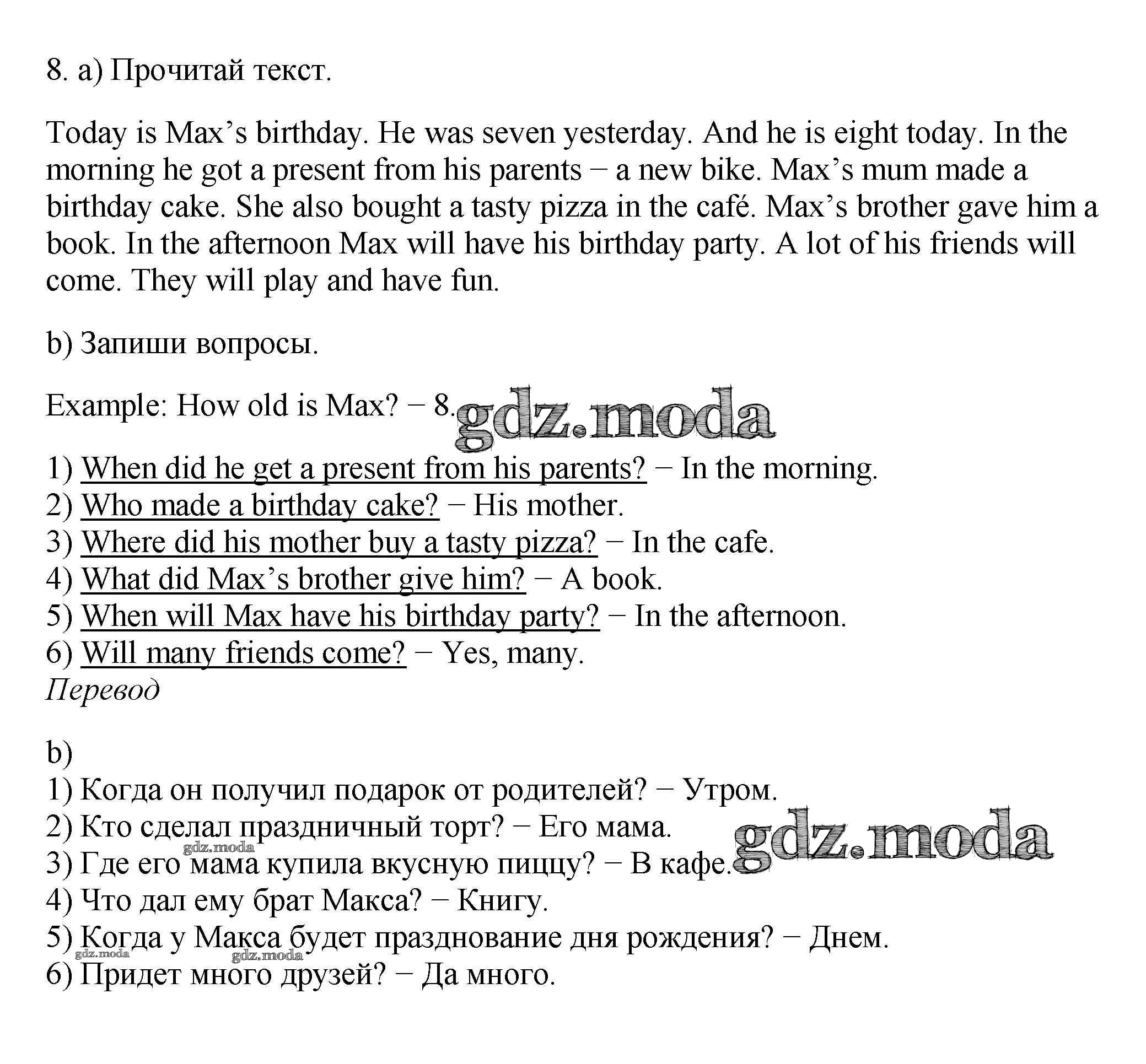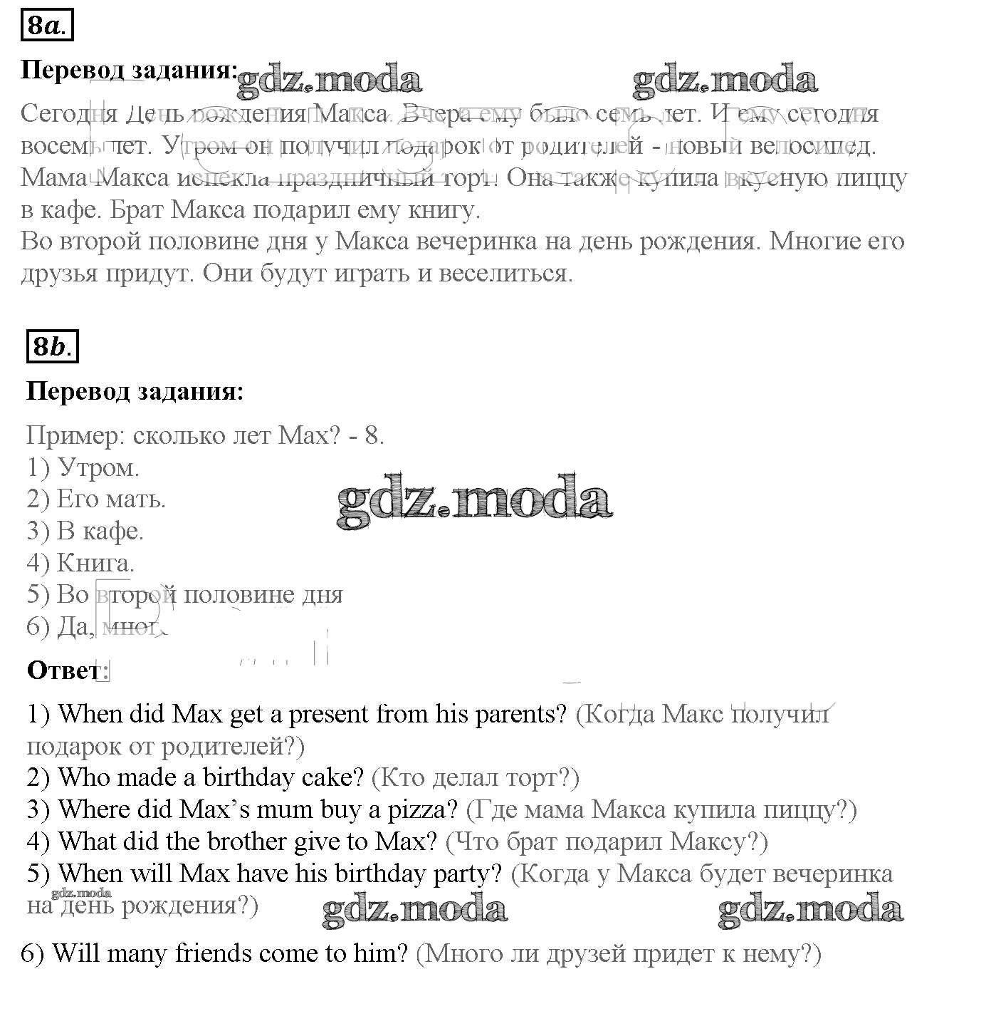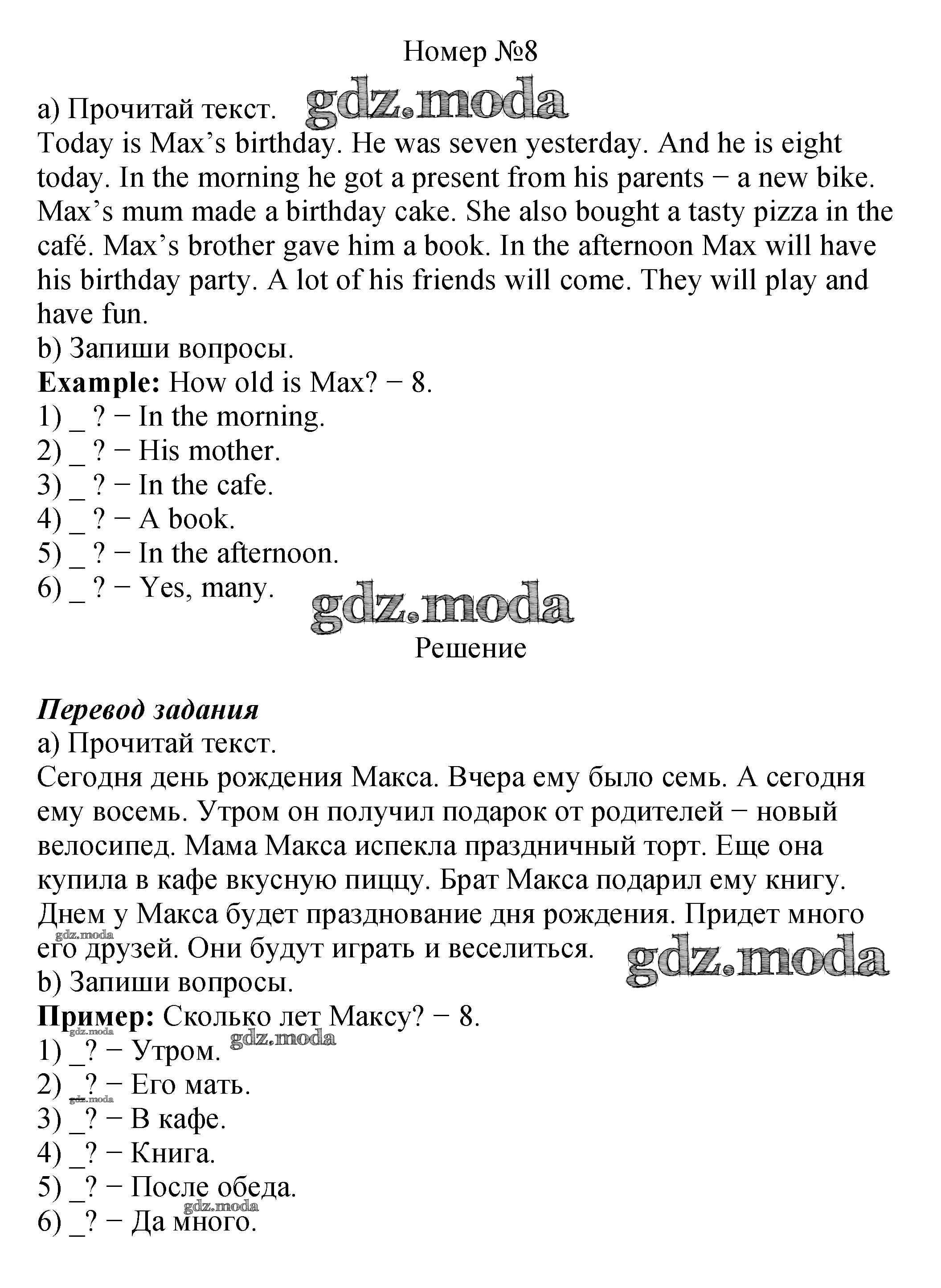 ОТВЕТ на задание № 8 Рабочая тетрадь с контрольными работами по Английскому языку 4 класс Биболетова Enjoy English