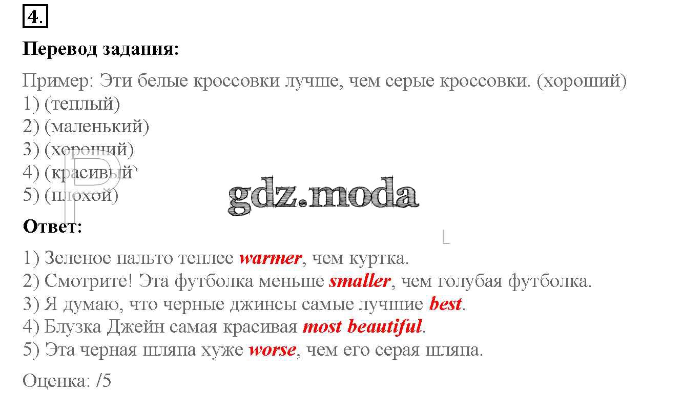 ОТВЕТ на задание № 4 Рабочая тетрадь с контрольными работами по Английскому языку 4 класс Биболетова Enjoy English