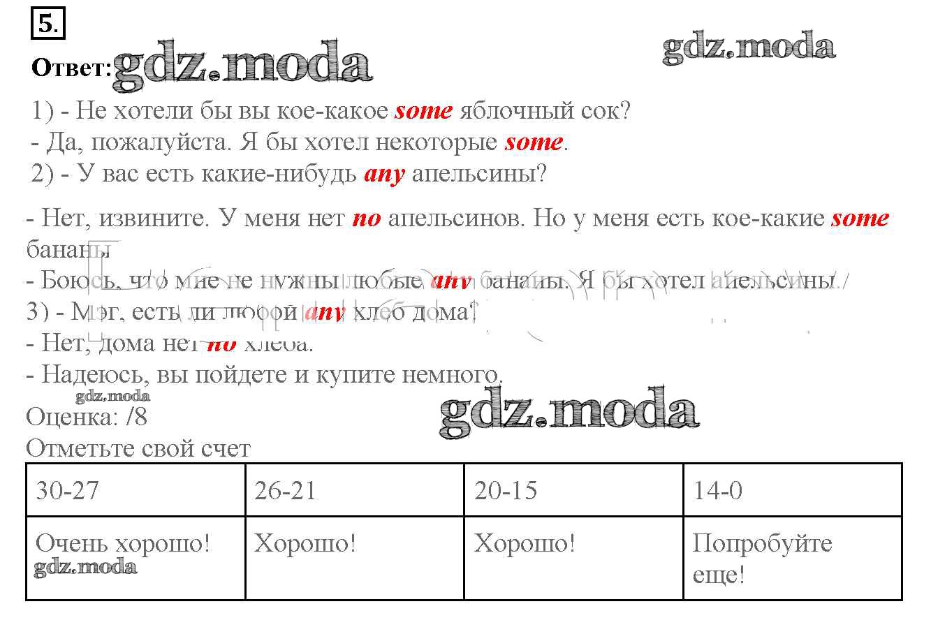 ОТВЕТ на задание № 5 Рабочая тетрадь с контрольными работами по Английскому языку 4 класс Биболетова Enjoy English