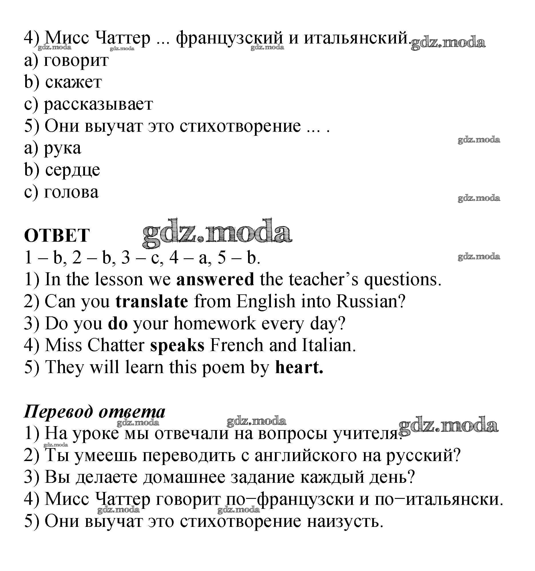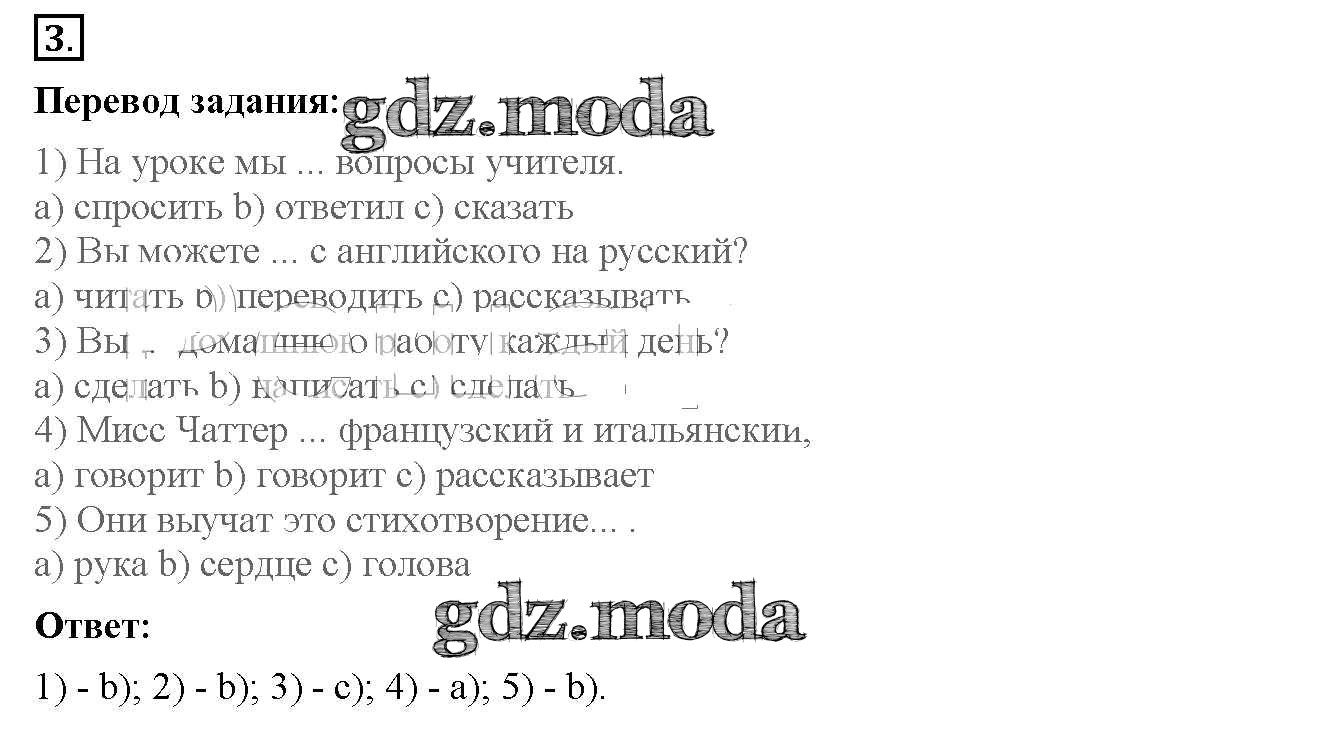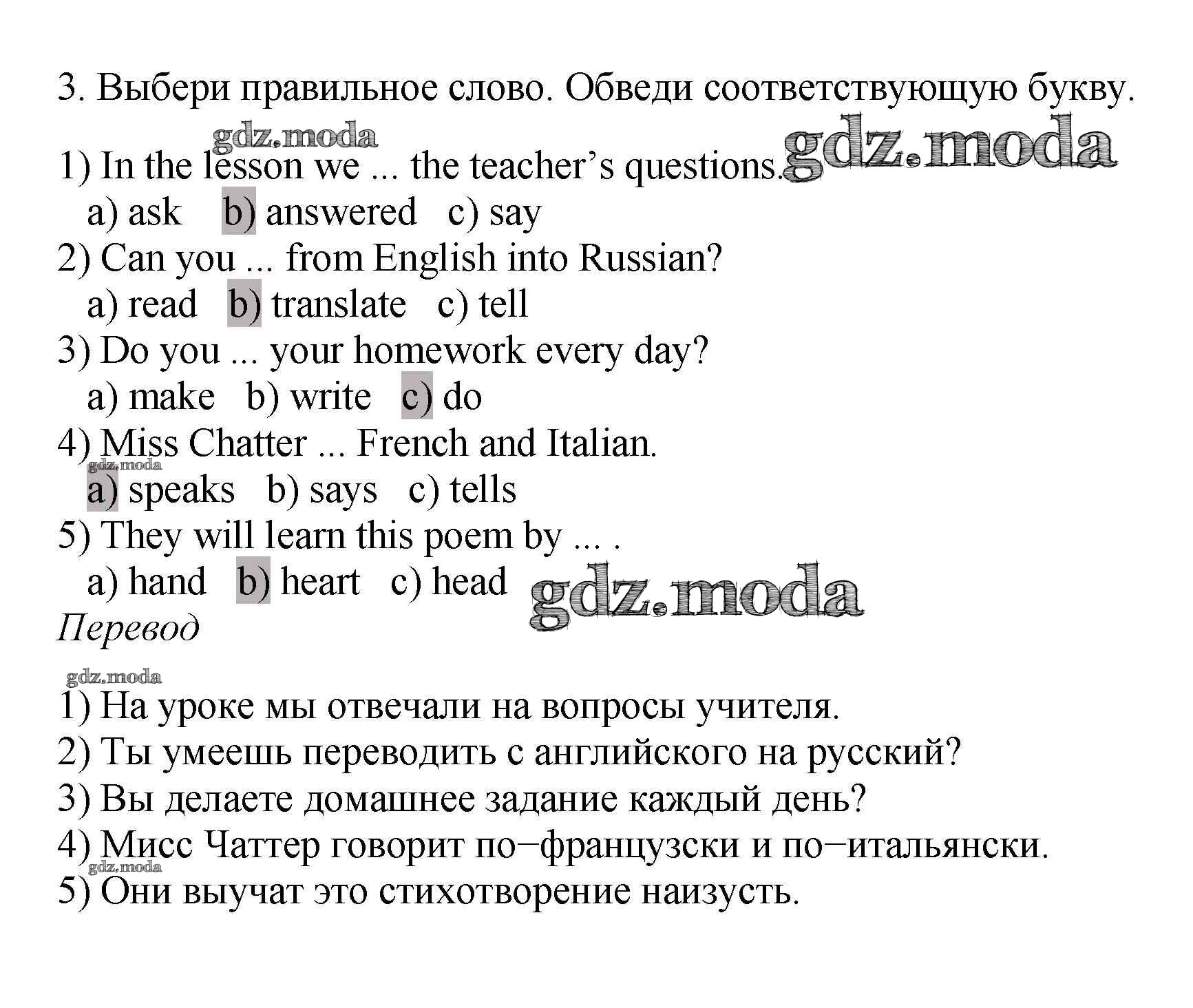 ОТВЕТ на задание № 3 Рабочая тетрадь с контрольными работами по Английскому языку 4 класс Биболетова Enjoy English