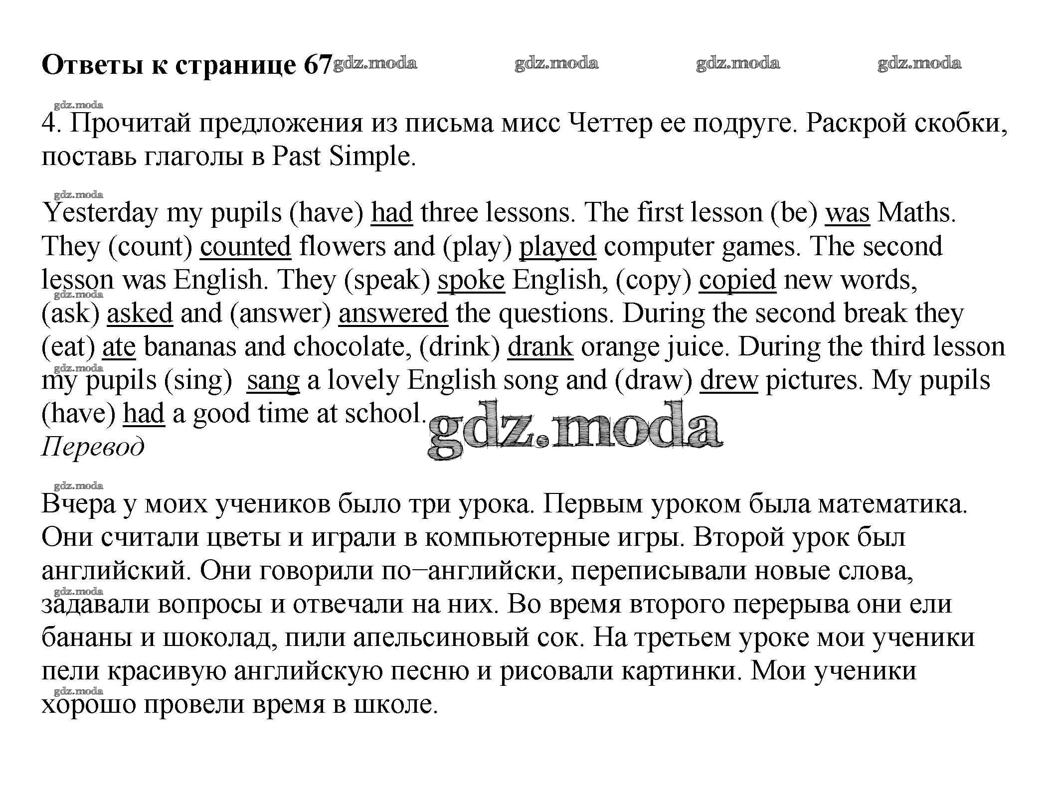 ОТВЕТ на задание № 4 Рабочая тетрадь с контрольными работами по Английскому языку 4 класс Биболетова Enjoy English