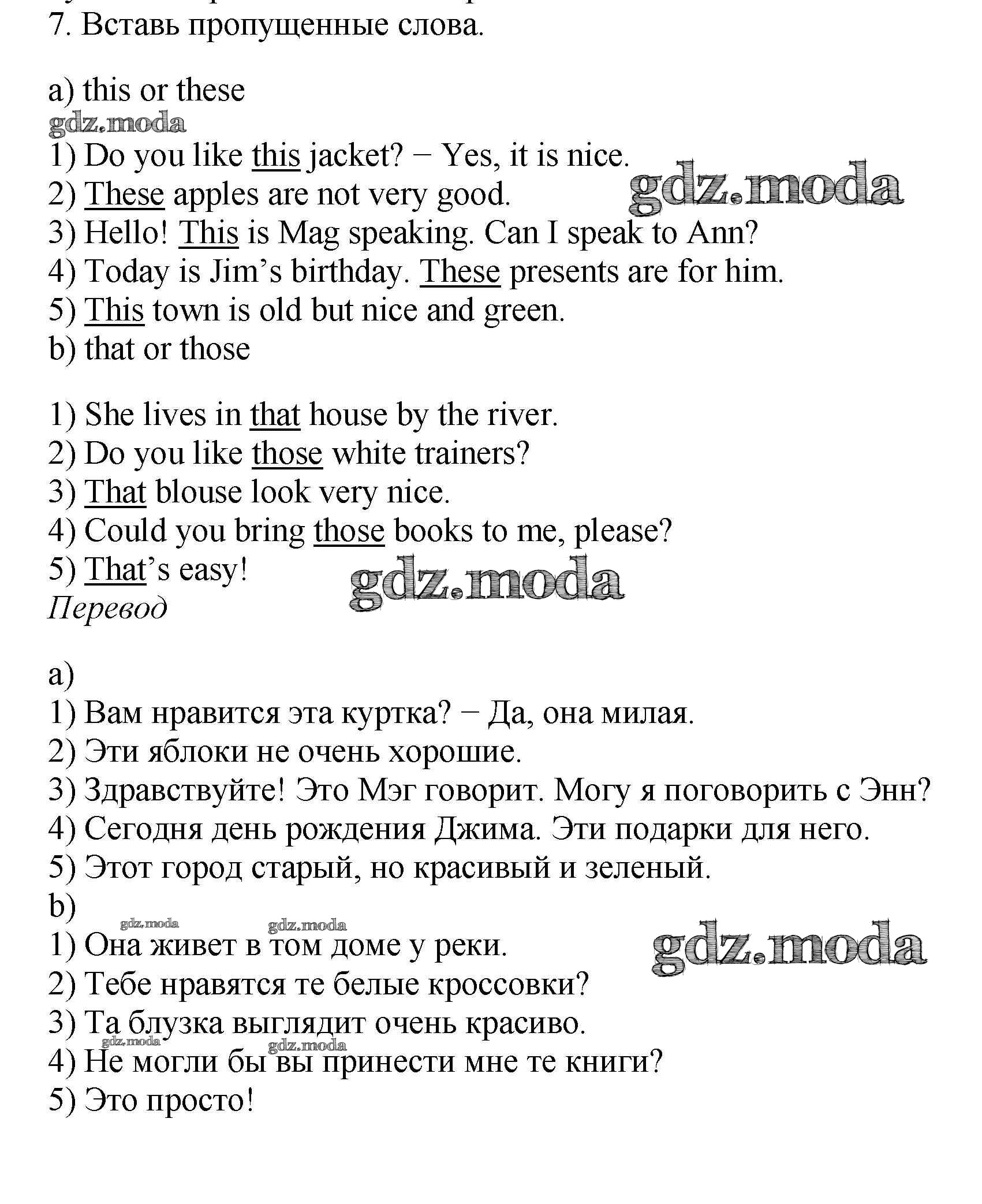 ОТВЕТ на задание № 7 Рабочая тетрадь с контрольными работами по Английскому языку 4 класс Биболетова Enjoy English