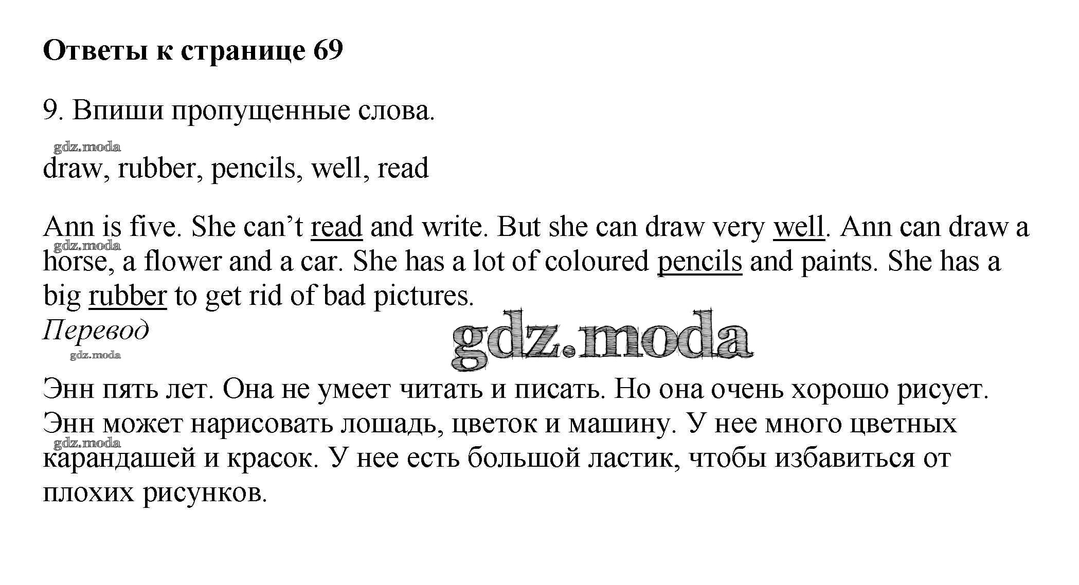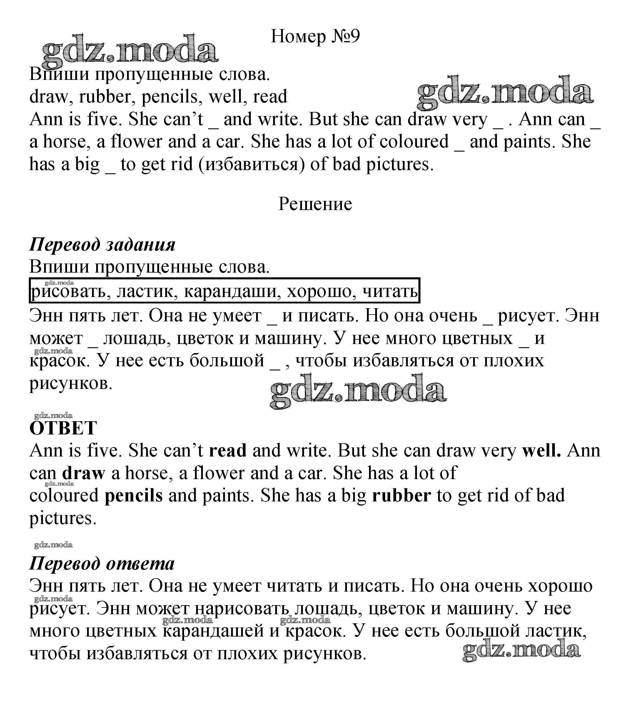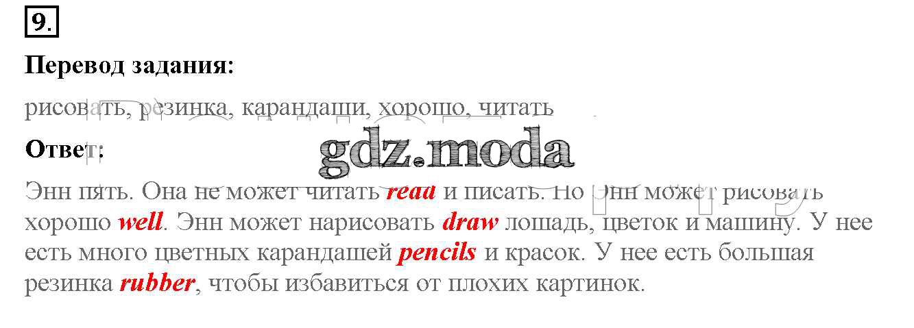 ОТВЕТ на задание № 9 Рабочая тетрадь с контрольными работами по Английскому языку 4 класс Биболетова Enjoy English