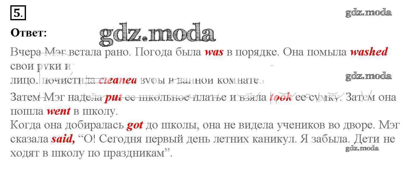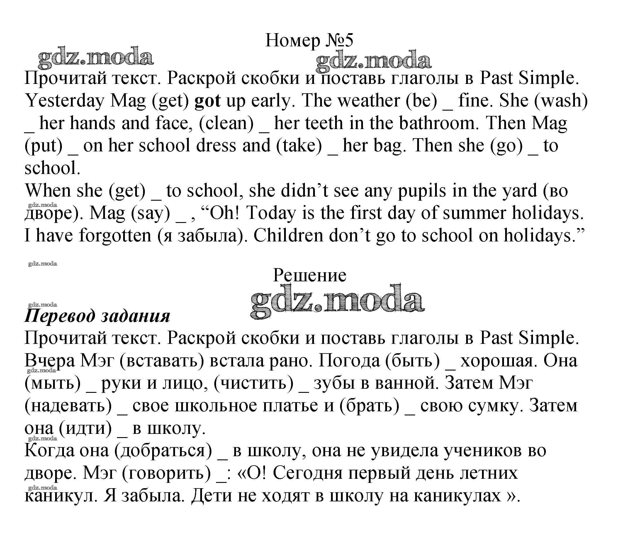 ОТВЕТ на задание № 5 Рабочая тетрадь с контрольными работами по Английскому языку 4 класс Биболетова Enjoy English