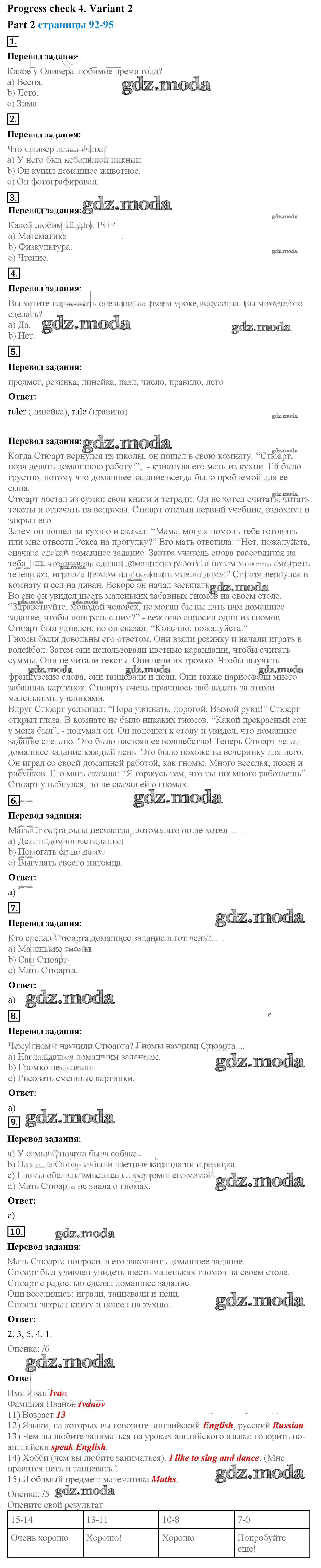 ОТВЕТ на задание № 1 Рабочая тетрадь с контрольными работами по Английскому языку 4 класс Биболетова Enjoy English