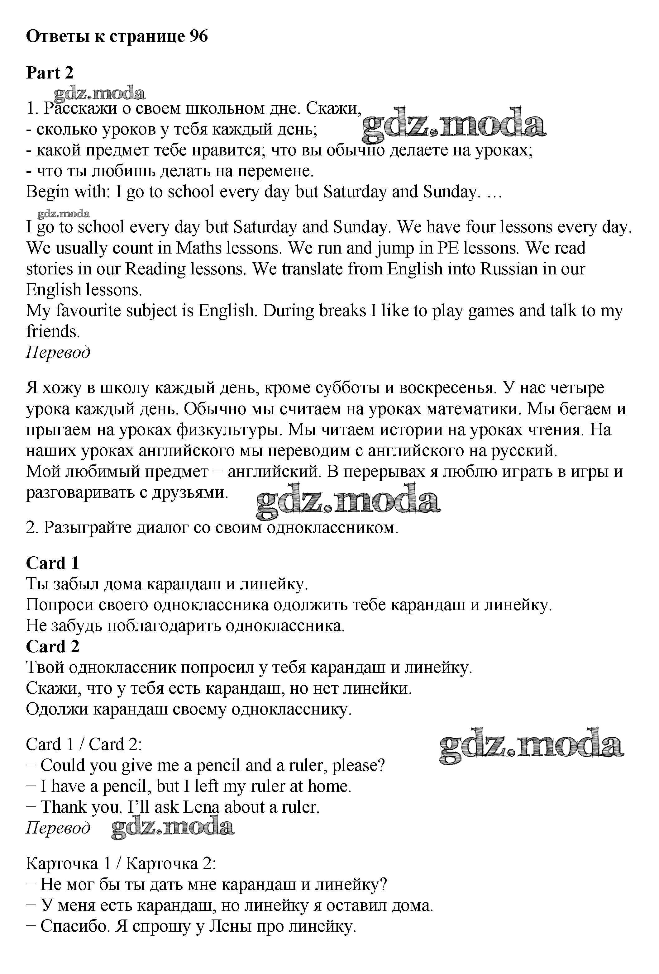 ОТВЕТ на задание № 2 Рабочая тетрадь с контрольными работами по Английскому языку 4 класс Биболетова Enjoy English