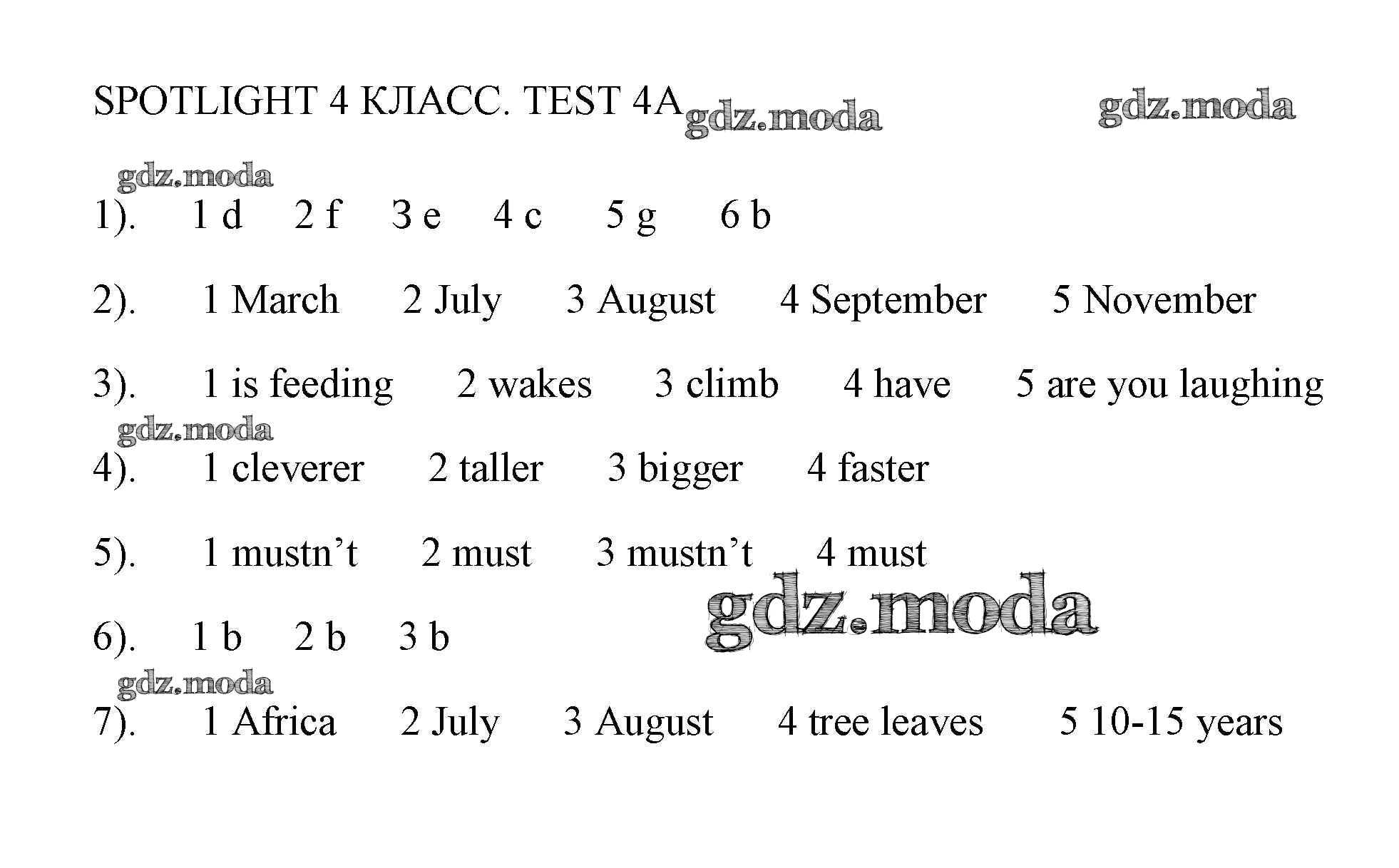 ОТВЕТ на задание № 4A Контрольные работы по Английскому языку 4 класс Быкова Spotlight